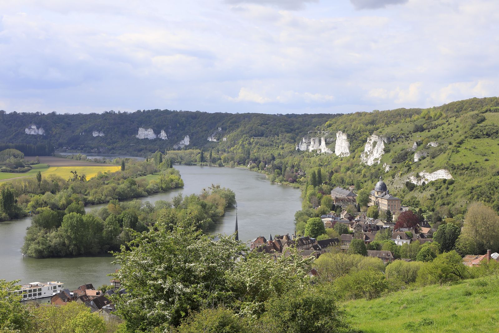 Die 27- köpfige Reisegruppe traf sich frühmorgens in Basel und wurde durch die beiden Reiseleiter, Div a D Dominique Juilland und Div a D Andreas Bölsterli begrüsst, im Anschluss fuhren wir mit dem TGV nach Paris. Ankunft auf die Minute pünktlich. Hier wartete bereits der GMS Reisebus mit Martin Budinsky. Nach einem ersten «Kennenlernen-Mittagessen», verbundenen mit der üblichen Frage «wie bezahlt man die Getränke möglichst effizient, wenn es für 27 Gäste nur eine Rechnung gibt» , fuhr uns Martin auf dem Weg nach Rouen, unserem ersten Etappenort, zu den Anhöhen von Les Andelys. Hier trafen wir auf die Ruinen des Schloss Gaillard, hoch über dem der Seinetal gelegen. Wir werden daran erinnert, dass die Normandie, wie es der Name besagt, einmal durch die Normanen mit Richard Löwenherz besetzt, also faktisch’ englisches’ Gebiet war, die Burg diente den Normanen als Vorposten zum Schutz der Stadt Rouen gegen Angriffe des französischen Königs. Die Seine an dieser engen Stelle mit seinen Übergängen und Anhöhen spielte aber auch, Ironie des Schicksals, sowohl im Mai 1940 anlässlich des Frankreichfeldzuges und vier Jahre später im August 1944 anlässlich des Rückzugs der Wehrmacht aus der Normandie eine wichtige Rolle.