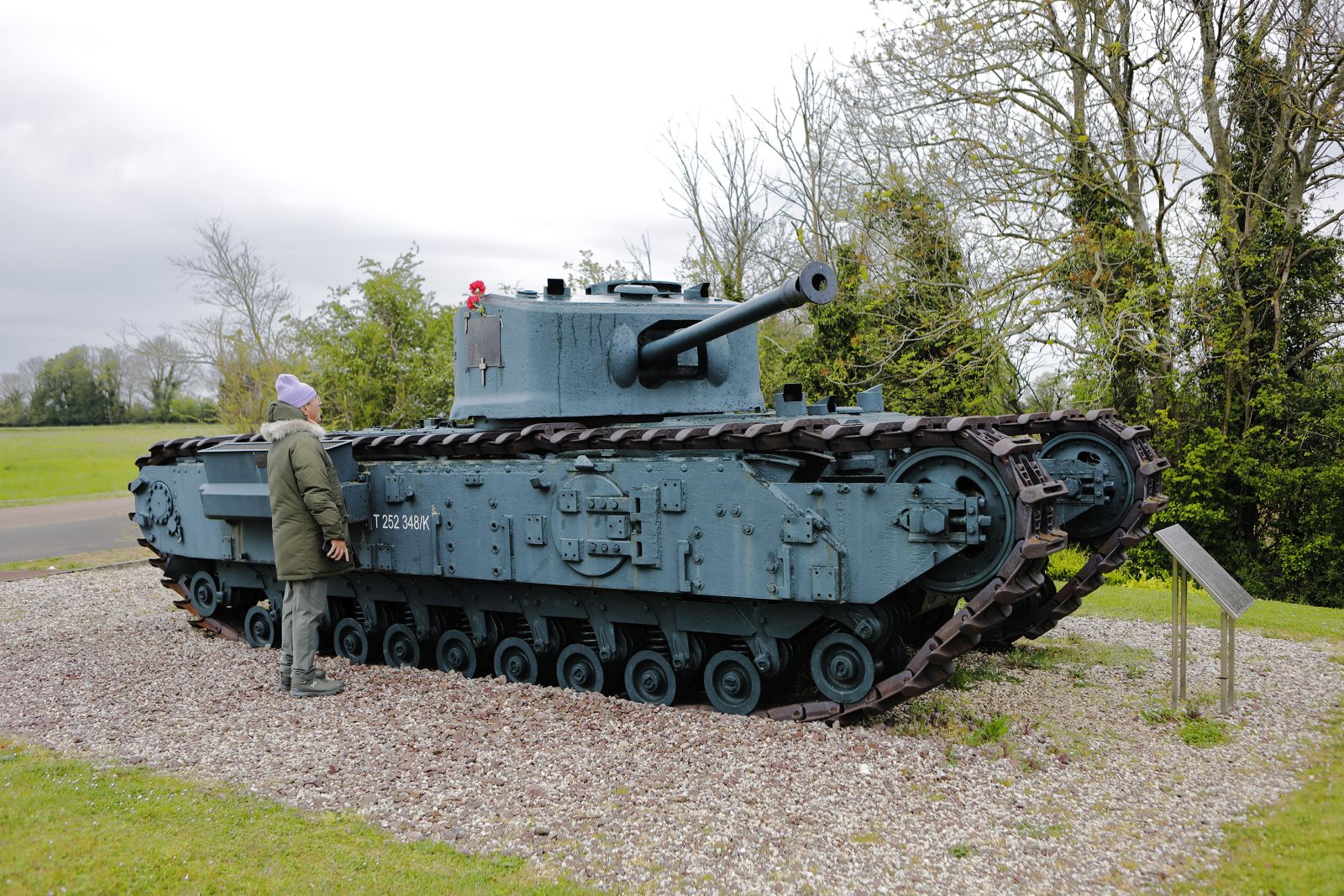 Auf der Rückfahrt nach Rouen, wo wir unsere letzte Nacht verbrachten, besuchten wir noch das Musée du Camembert in Vimoutiers, hier wird der Originalkäse hergestellt, sowie ganz in der Nähe den Unfallort von GFM Rommel. Rommels Fahrzeug wurde damals von einem Flieger angegriffen. Der Auftrag der alliierten Flieger lautete damals, jedes sich in Bewegung befindliche feindliche Objekt zu bekämpfen. Ein letzter Höhepunkt wurde uns auf der Fahrt versprochen: ein Deutscher Panzerkampfwagen VI, Tiger I. Vielleicht der beste Panzer im WWII. Ein solcher steht einsam und verlassen, an einer Hauptstrasse, in der Nähe des Ortes, wo die Besatzung ihn seinerzeit stehen gelassen hat.