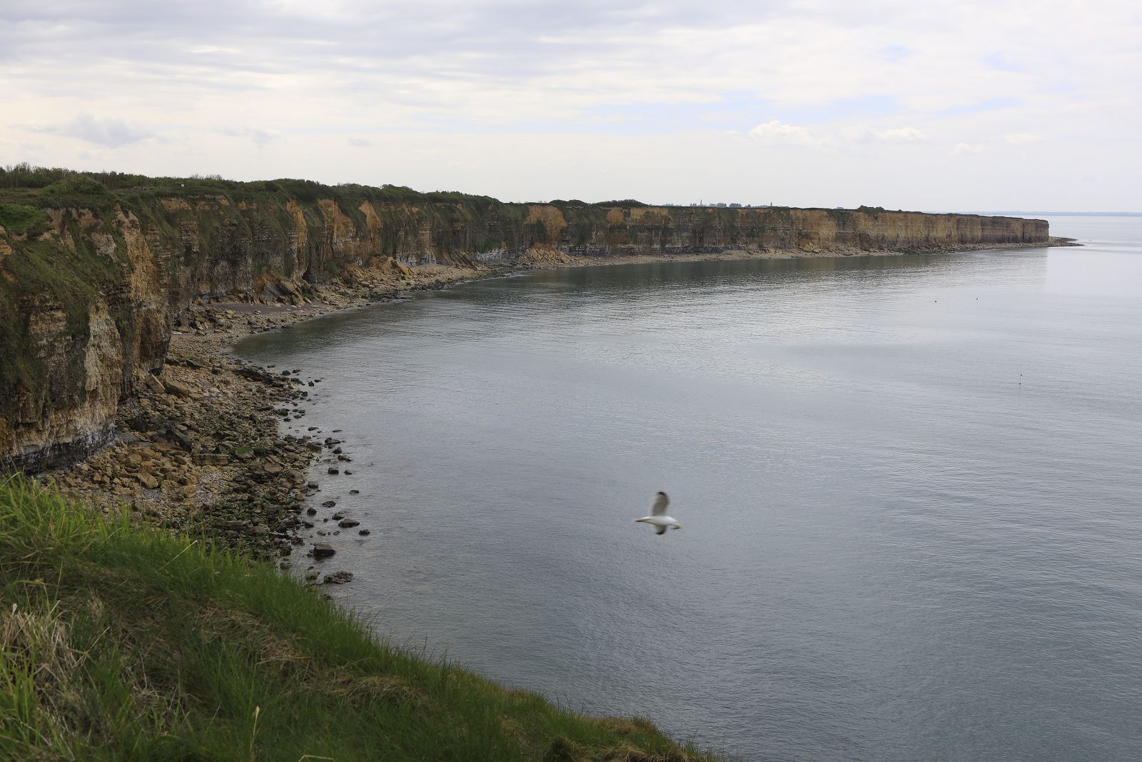 Am Nachmittag erfolgte der Besuch der berühmten Pegasus-Brücke, welche sich heute im Park des zugehörigen Museums befindet. Wir erinnern uns: diese Brücke musste damals zwingend unversehrt in den Besitz der Alliierten gelangen, um die Flanke sichern zu können. Sie wurde im Handstreich in der Nacht vom 5./ 6. Juni 1944 von britischen Luftlandeinheiten mit ihren Lastenseglern genommen. Ein weiterer Höhepunkt war der Besuch der Artilleriebatterie von Merville. Ihr Auftrag bestand darin, den westlichen Abschnitt unter Feuer zu nehmen und stellten deshalb eine grosse Bedrohung der britischen und kanadischen Landung in diesem Raum dar. Die Batterie wurde in der Nacht auf den 6. Juni nach einem verlustreichen Kampf durch britische Fallschirmjäger gestürmt. Während unserer Fahrt im Anschluss entlang der Küste der Normandie, mit Besuch des Musée du Mur de l’Atlantike, einem gut erhaltenen ehemaligen Deutschen Bunker und Beobachtungposten, erhielten wir einen umfassenden Eindruck über Topographie und Ausdehnung der Landezonen. Zum Vergleich: die Ausdehnung zwischen den beiden äussersten Abschnitten betrug ca. 80 km, was in etwa der Distanz von Zürich nach Sargans entspricht