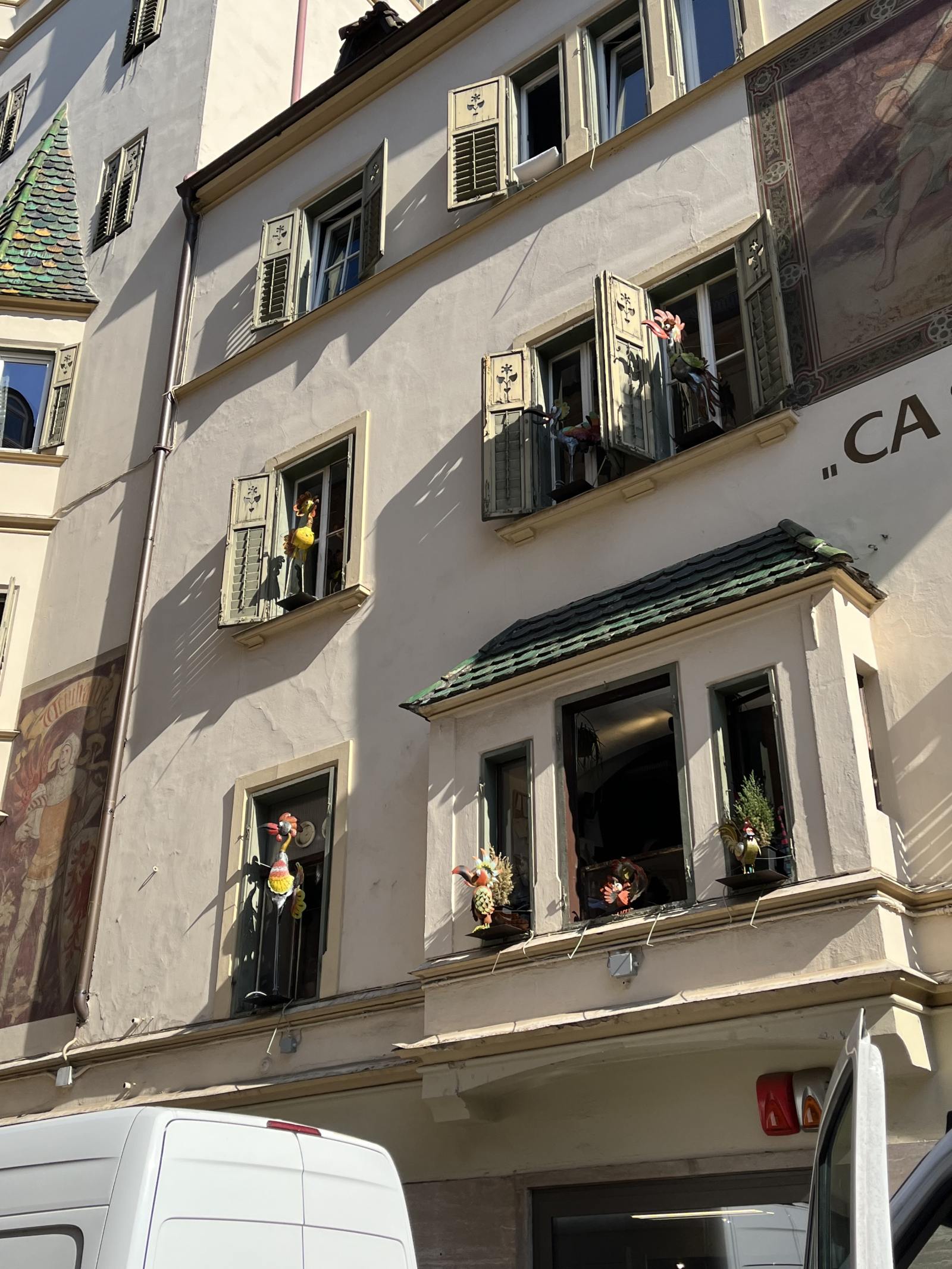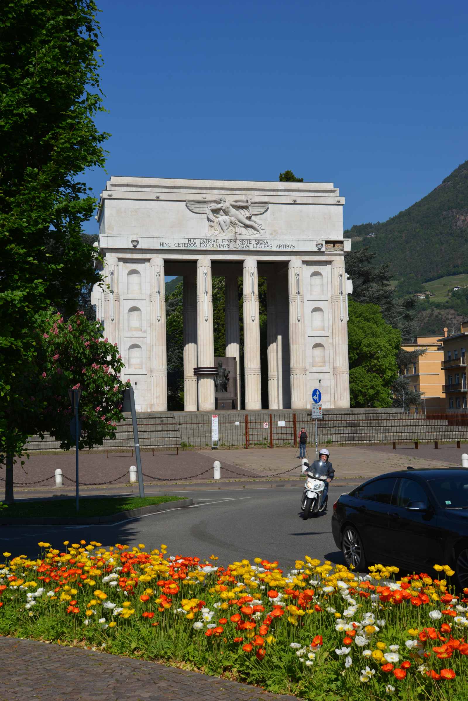 Weiter durch die Altstadt, entlang der Arkaden über die Talferbrücke auf den Siegesplatz. Richtungswechsel (geographisch & politisch) unseres Reiseleiters um ins, in faschistischem Grau erbaute «Neu-Bozen» zu spazieren. Das Siegestor hat auch schon bessere Zeiten erlebt.