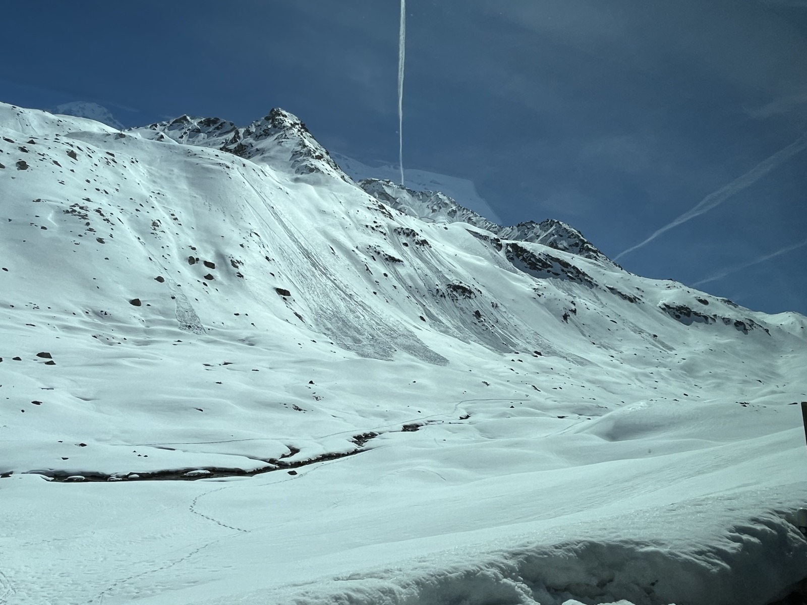Pünktlich fahren wir los. Auf der Verkehrsachse nach Chur und Landquart ist nicht viel los. Im rollenden Hörsaal werden wir vom Reiseleiter auf die Feinheiten der Exkursion eingestimmt! Café-Halt in Davos-Wolfgang.
