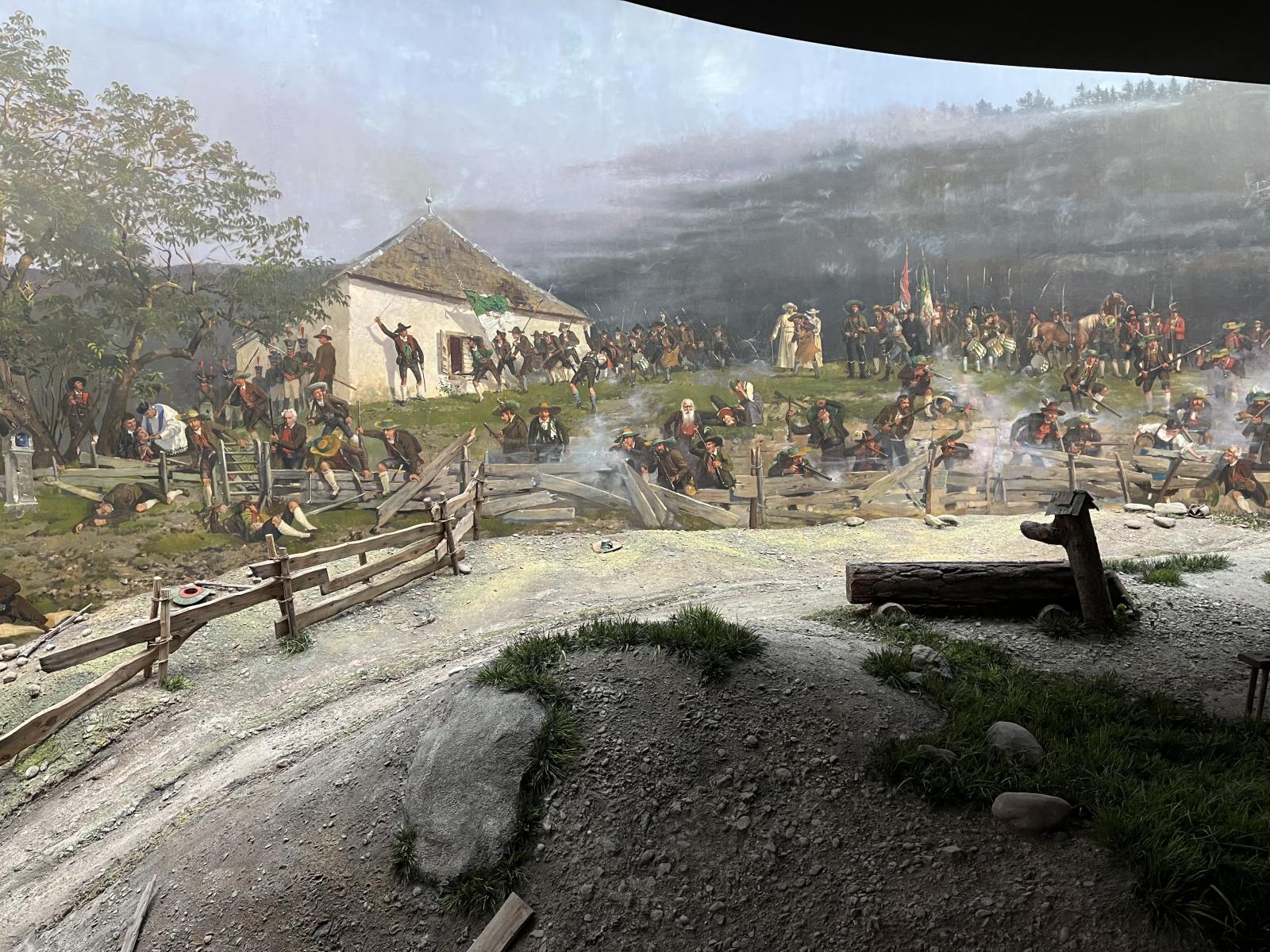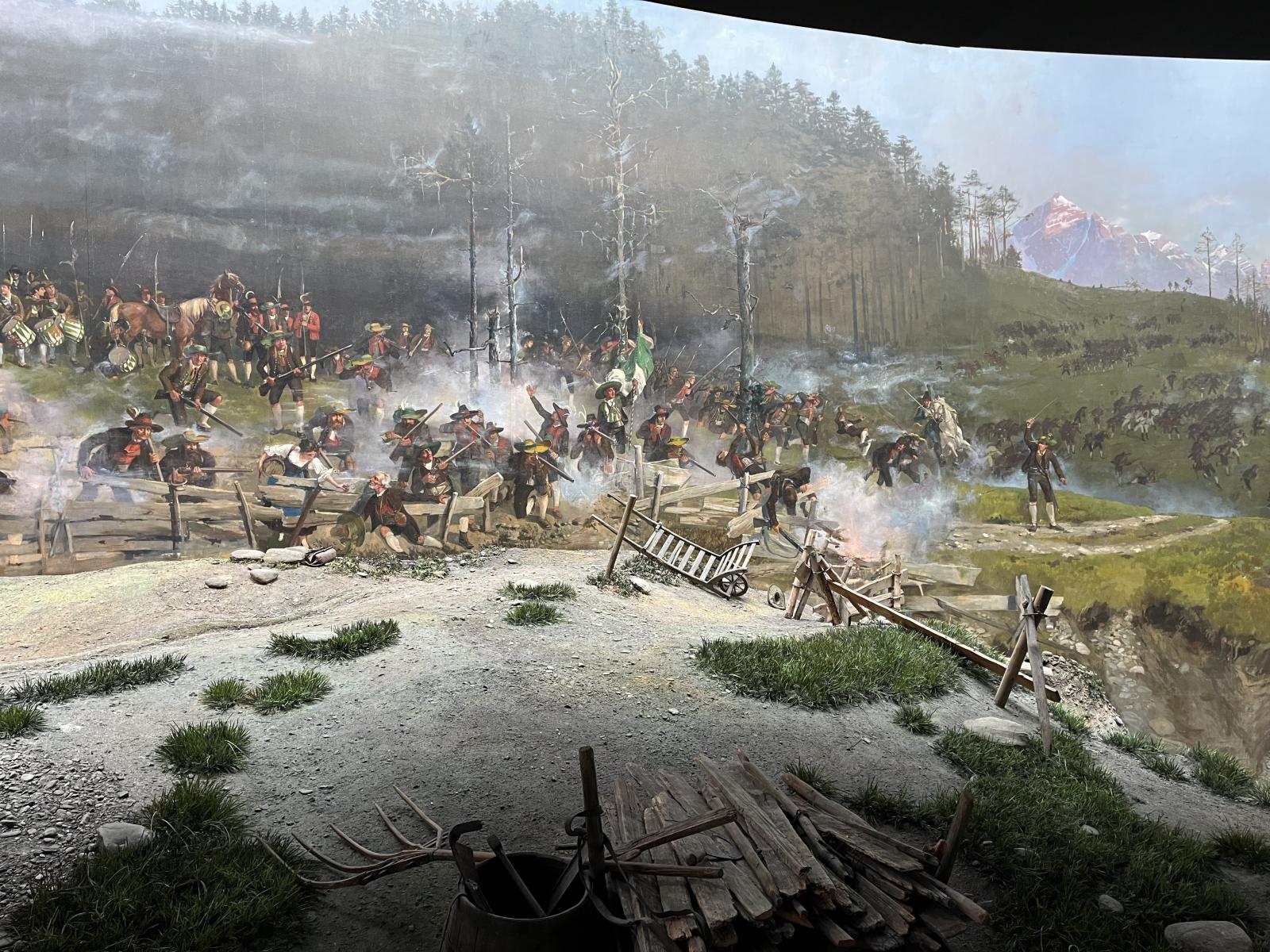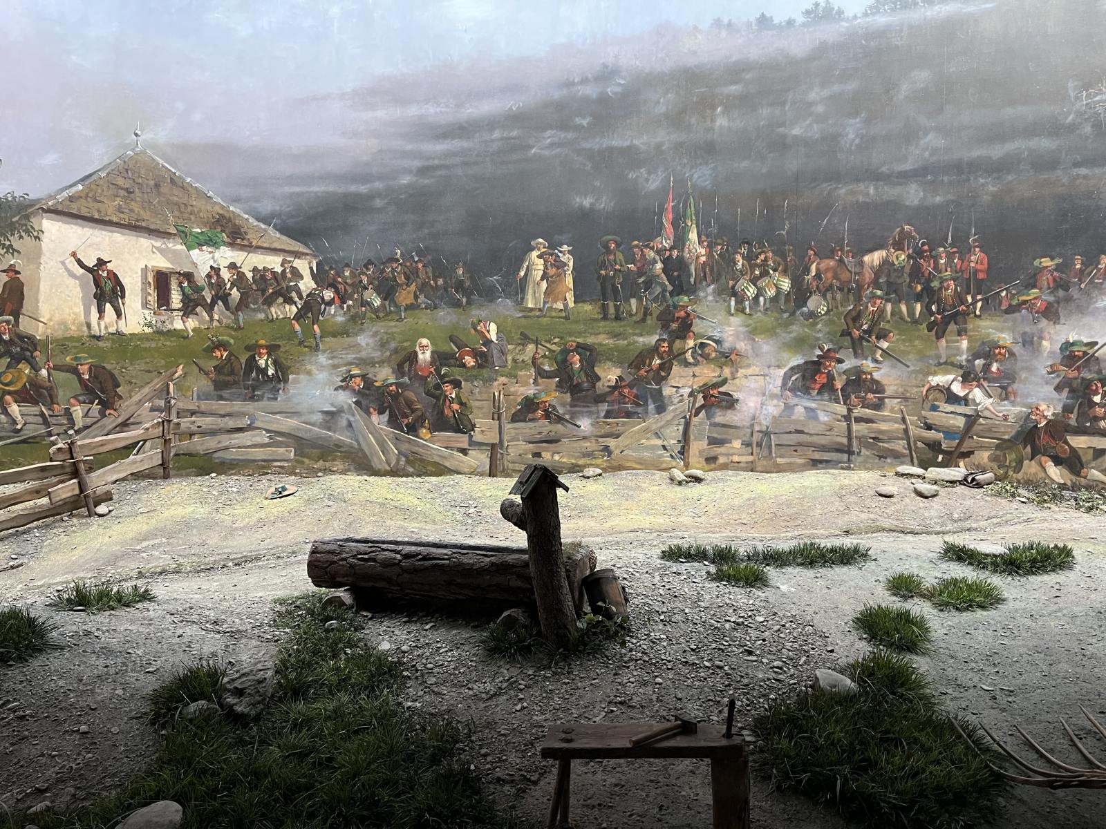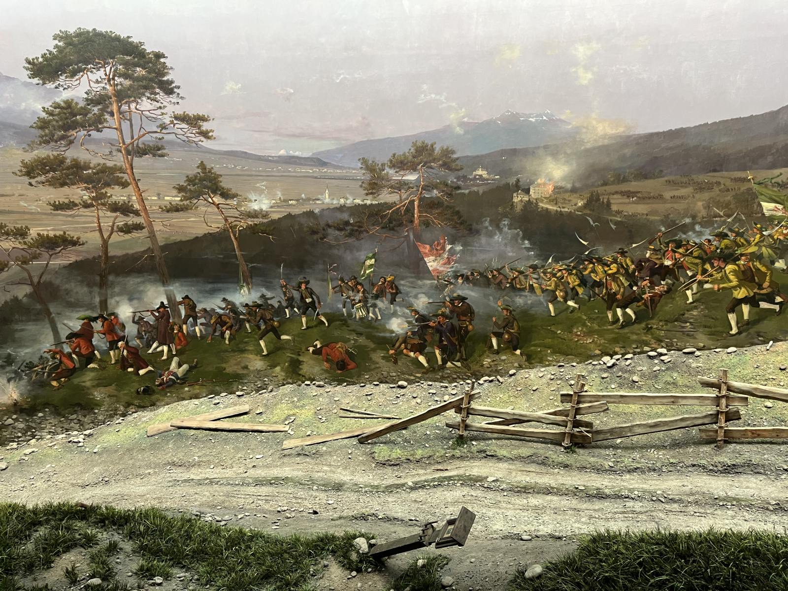 Viele erhebliche Einzelheiten zum Thema radikale Form des Freiheitskampfes brachten unseren Leiter förmlich in Redeform. In Sterzing zweigten wir in die Brenner-Strasse. Etwas oberhalb von Innsbruck kann man das Kaiser-Jäger-Museum und gleichzeitig in einem postmodernen Gebäude das imposante Schlachtenpanorama der Bergisel-Ereignisse verfolgen.