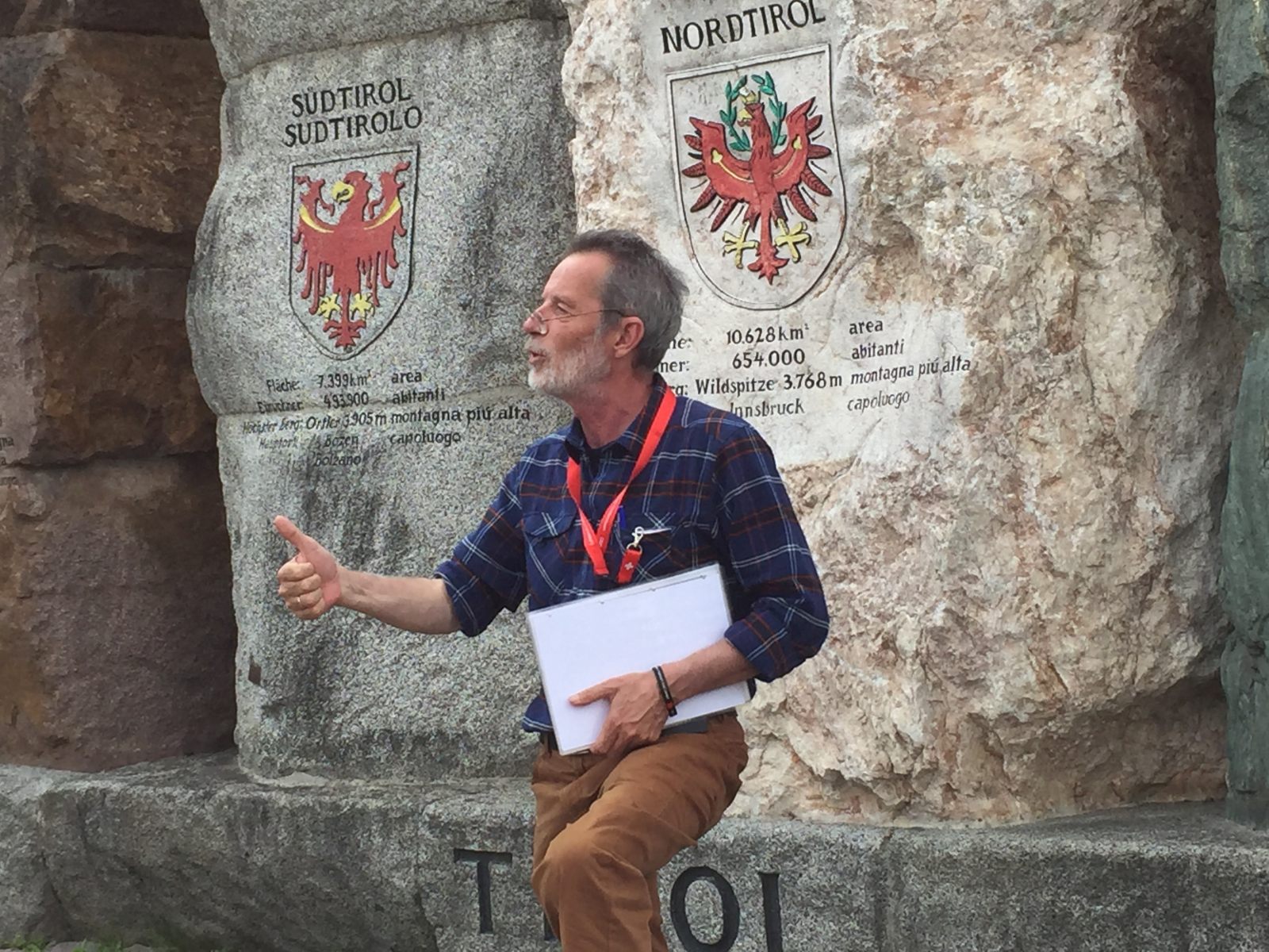 Zeitig fahren wir los und schwenken ohne Verzögerungen in das liebliche wie auch sehr malerische Passeiertal. Nach einer halben Stunde Halt für eine Freiluft-Bildungseinheit unmittelbar im Gelände beim Gasthaus «Sand» (St. Martin). Hier wirkte Andreas Hofer als Wirt, Handelsmann, Rebell und Bauernfürst.