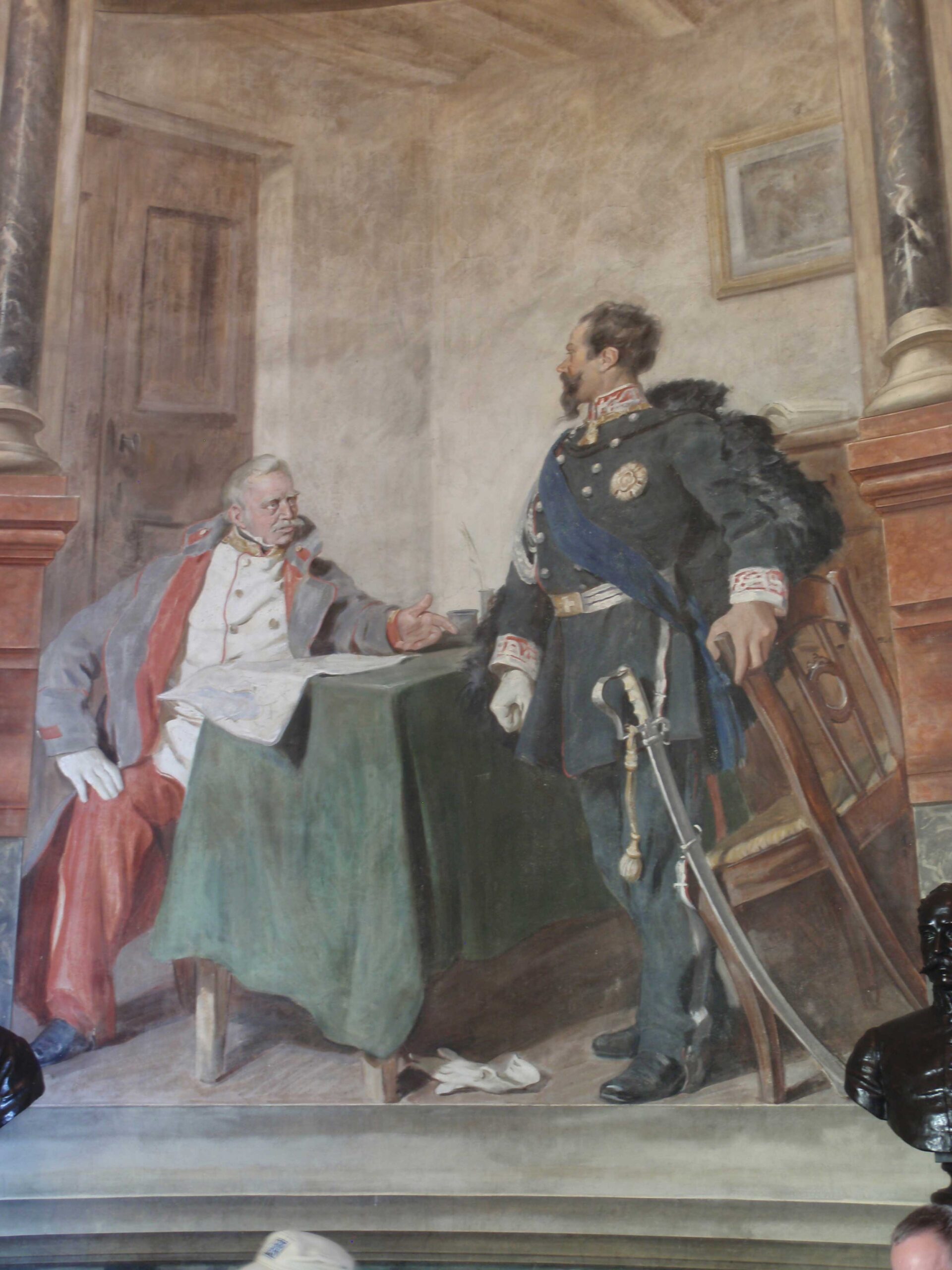 Auf der Fahrt mit dem Bus via Gotthard und Bergamo nach San Martino della Battaglia haben uns die Reiseleitenden Dr. Jürg und Barbara Stüssi-Lauterburg nach einer herzlichen Begrüssung der Reiseteilnehmerinnen und Reiseteilnehmer die Zusammenhänge und Hintergründe zum Geschehen im nördlichen Abschnitt der Doppelschlacht von San Martino-Solferino profund vermittelt. Bereits beim Verlassen von Zürich hat Herr Stüssi mit Hinweis auf den Aufsatz von Peter Stadler auf den Frieden von Zürich 1859, dem Ende des sardischen Krieges (Zweiter Unabhängigkeitskrieg) hingewiesen, der im Rathaus offenbar auf Vorschlag von Kaiser Franz Joseph abgeschlossen wurde (Sonderdruck aus «Schweizer Monatshefte», 39. Jahr, Heft 7, Oktober 1959, S. 594f.).