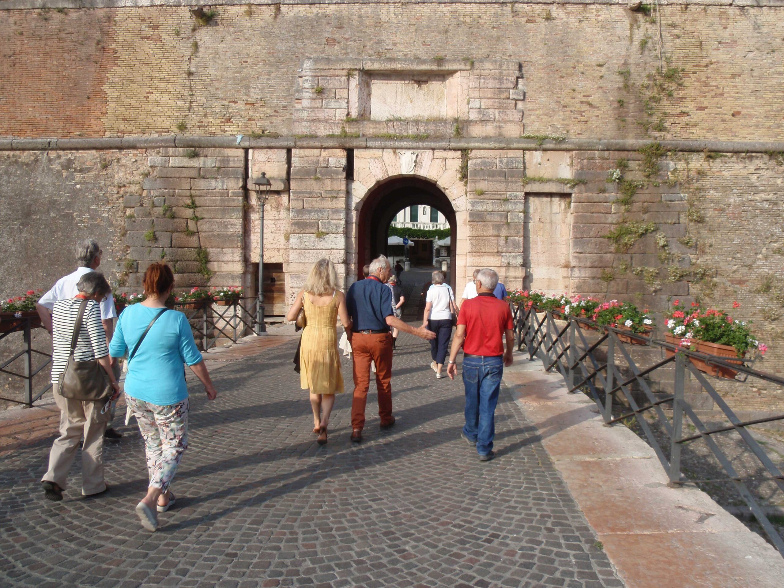 In Castiglione delle Stiviere stand die Besichtigung des Museums des Roten Kreuzes und besonders eindrücklich der Torturm des Castellos auf dem Programm, auf dessen Terrasse Herr Stüssi die Truppenbewegungen im Gelände anschaulich erläutern konnte. Anschliessend besuchten wir in Solferino das Memorial des Roten Kreuzes. Nach dem gemeinsamen Mittagessen ging die Fahrt nach Valeggio sul Minico. Dort spazierten wir zum Ponte Lungo Visconteo und besichtigten anschliessend noch das Ossario von Custoza. Am Abend sorgte ein Spaziergang durch Trento und ein gemütliches italienisches Abendessen für einen geselligen und schönen Ausklang des Tages.