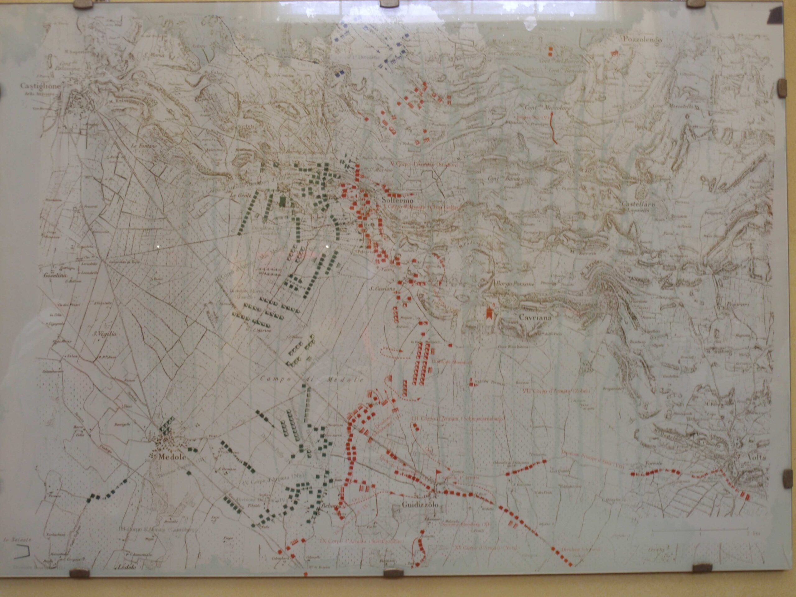 Zuvor und danach stiessen die Heere südwestlich von Verona, bei Custoza aufeinander. 1848 unter Feldmarschall Graf Radetzky und 1866 unter Erzherzog Albrecht von Österreich-Teschen stand die Gunst des Mars zweimal auf Habsburgs Seite. So wurde das früher auch mit Doppel-«z» geschriebene Custoza zum Inbegriff der Erfolge der österreichischen „herrlichen Armee“. Der Sieg von 1848 sollte die Lombardei bis zur entscheidenden Schlacht von Solferino weiterhin an Österreich binden. Der glückliche Sieg 1866, auf den Tag genau sieben Jahre nach Solferino bestätigte Habsburgs militärische Vormachtstellung in Venetien. Die Niederlage des kaiserlichen Heeres am 3. Juli 1866 gegen die mit Italien verbündeten Preussen bei Königgrätz besiegelte allerdings den endgültigen Rückzug der Armeen Franz Josephs I aus Norditalien. Wien hatte die nach dortiger Ansicht schwierigere Front gegen Preussen Ludwig von Benedek und die einfachere Front dem hochbegabten Sohn des legendären Erzherzogs Carl anvertraut.