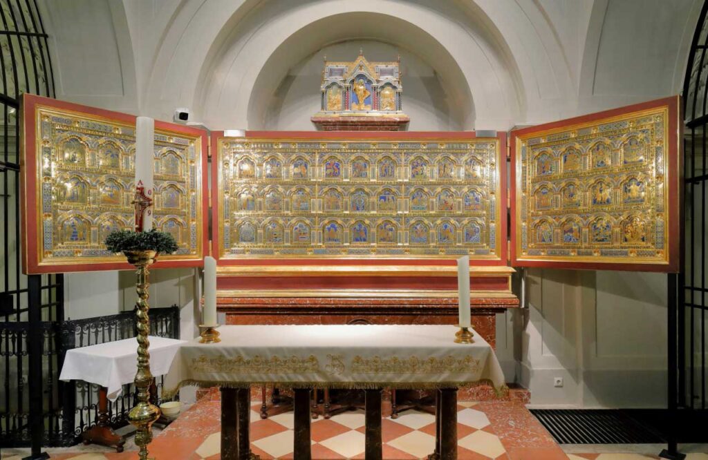Die Schatzkammer beherbergt neben liturgischen Gewändern, mittelalterliche Handschriften, Urkunden und dem Hofschatz der Babenberger als Highlights den österreichischen Erzherzogshut und im Reisealtar des heiligen Leopolds der Agnesschleier aus dem 12. Jahrhundert.