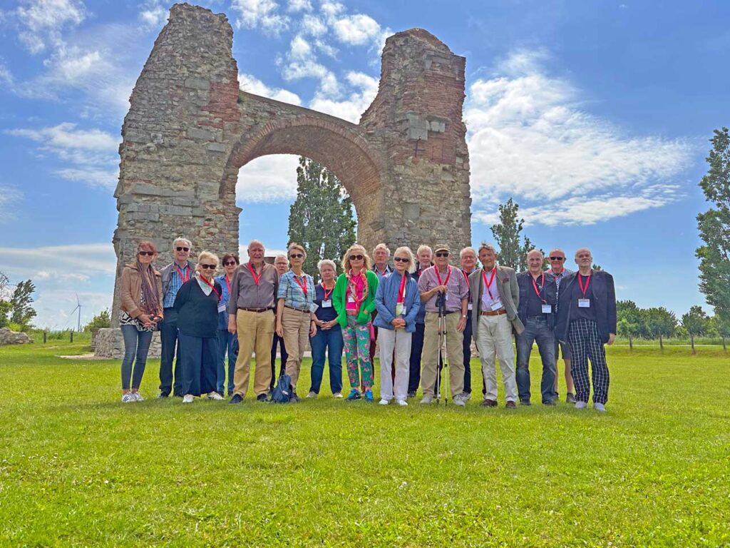 Nach dem eindrücklichen Besuch der Römerstadt Carnuntum führte uns der Bus zum erholsamen Mittagessen. Zu erwähnen wäre noch das ausserhalb der Stadt stehende «Heidentor», ein Siegesmonument aus dem 4. Jahrhundert, von dem nur noch ein einzelner Torbogen erhalten geblieben ist. Es repräsentierte Ruhm und Grösse des römischen Reiches – ein politisches und militärisches Signal. Der Name entstand im Mittelalter, als man die Herkunft nicht mehr kannte. Als Fotohintergrund bei untergehender Sonne versieht es heutzutage noch einen profanen Zweck.