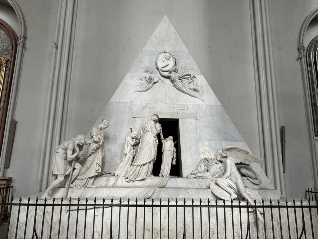 Herausheben möchte ich die prachtvolle Thronwiege des Sohnes Napoleon I. und seiner Frau Marie Louise von Österreich, dem König von Rom und späteren Herzog von Reichstadt. Sie war ein Geschenk der Stadt Paris an die Kaiserin und zählt zu den besonderen Exponaten. Aus über 280 kg Silber gefertigt, ist sie durch die Gestaltung ein Symbol für Frankreichs Ruhm und Grösse Napoleons. Nach der Niederlage Napoleons flieht Marie Louise mit dem Kind nach Österreich. Es wächst am Wiener Hof auf, lebt abgeschirmt und wurde militärisch ausgebildet. Napoleon Franz Bonaparte, so sein voller Name, war ein intelligenter, junger Mann, ernst und pflichtbewusst. Er starb im Alter von 21 Jahren im Schloss Schönbrunn an Tuberkulose. Seine sterblichen Überreste wurden auf Anordnung Hitlers 1940 von Wien nach Paris überführt. Er liegt im Invalidendom in Paris. Sein Herz aber, dass wussten die Räuber nicht, liegt immer noch in der Herzgruft der Habsburger in der Augustinerkirche, in eine Urne gebettet. Sie ist leicht erkennbar, denn sie ist von einem Band in den Farben der Trikolore umschlungen.