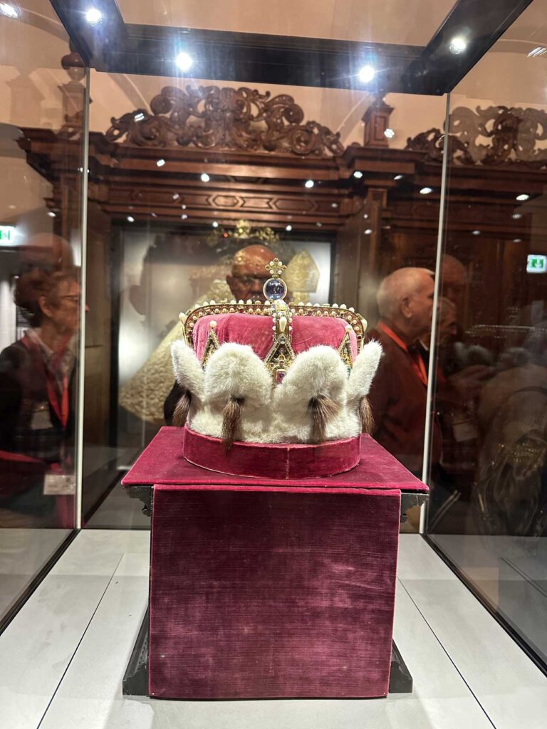 Weiter ging es über den Kohlmarkt zur Burg und zur eindrücklichen Schatzkammer. Sie beherbergt die Krönungsinsignien des Heiligen Römischen Reiches, die Krone Rudolfs II., die spätere Kaiserkrone Österreichs, legendäre Objekte oder das burgundische Erbe. Die individuelle Besichtigung war zeitlich beschränkt, sodass sich jeder auf die Ausstellungsobjekte konzentrieren konnte, die ihn interessierten.