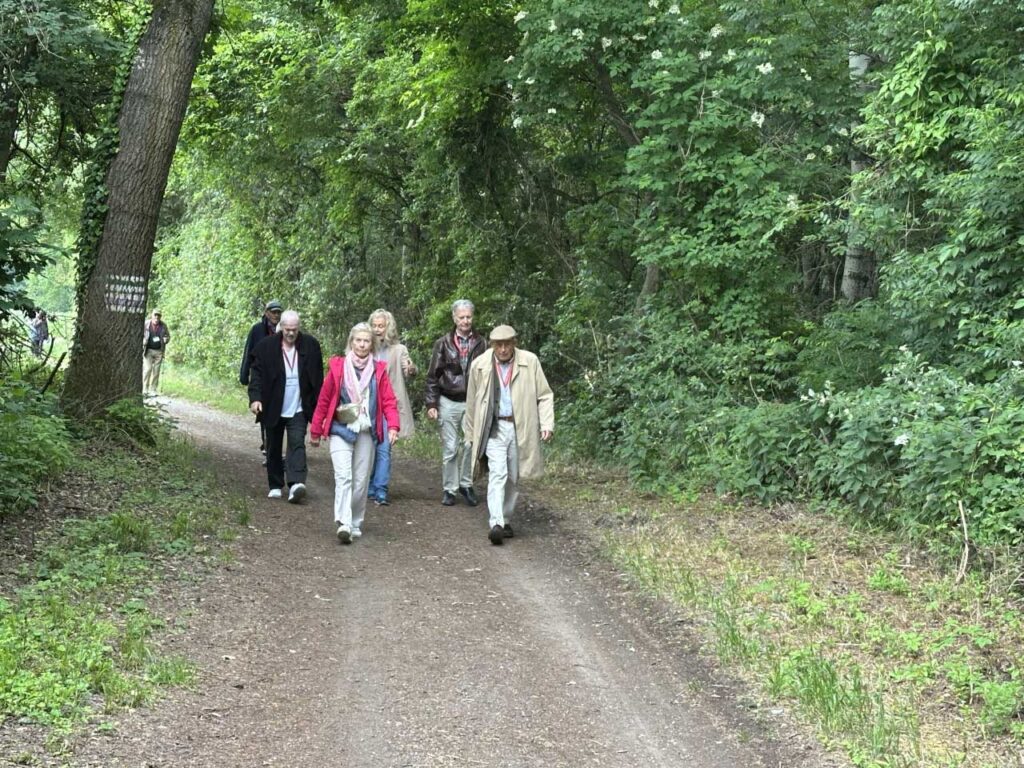 Nach der morgendlichen Einführung durch unseren Reiseleiter fuhren wir in die Lobau auf den Spuren Napoleons. Die Donau war zu seiner Zeit unreguliert, bildete viele Seitenarme, Altwasser und Inseln. Sie war eine wichtige Handelsroute und ein strategisch wichtiger Fluss für Truppenbewegungen. Die Reisegruppe marschierte zu den Orten, an den die französische Armee die Überquerung durchführte und diskutierte den Schlachtplan Napoleons.