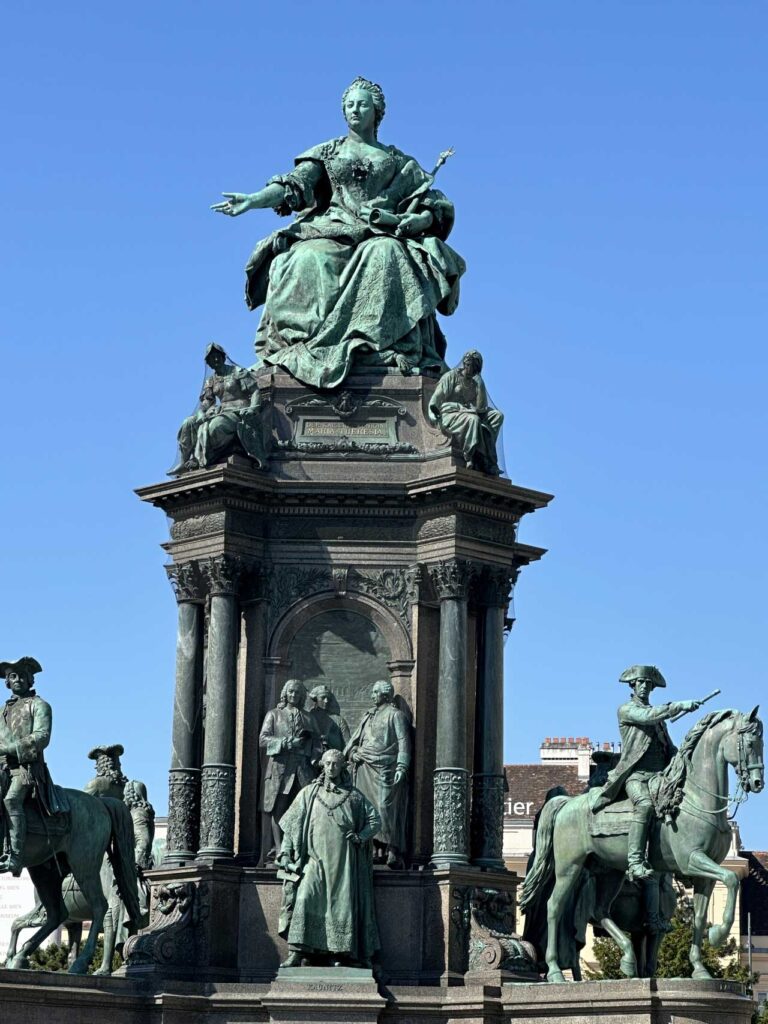 Ein gemeinsamer Besuch im kunsthistorischen Museum am Ring mit einer hevorragenden, privaten Führung durch die unendlich grosse und wertvolle Sammlung, deren Grundstock die enorme Sammlertätigkeit der Habsburger über Jahrhunderte bildet, rundet die Wienreise ab. Inmitten der beiden Museen, dem kunst- und dem naturhistorischen Museum, thront Kaiserin Maria Theresia und blickt hoheitsvoll hinunter. Sie ist von ihren vier wichtigsten Beratern begleitet: ihrem Leibarzt Gerhard van Swieten, dem Kanzler Klemens Metternich, dem Finanzminister Franz de Paula Colloredo und dem General Prinz Eugen von Savoyen.