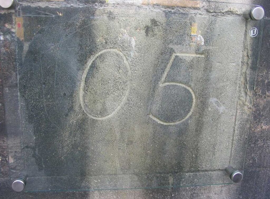 David Accola machte uns auf ein in Stein gemeisseltes Symbol auf der Westfassade rechts vom Riesentor aufmerksam, bestehend aus Buchstaben und Zahlen: O5. Es erinnert an den Widerstand während des Zweiten Weltkriegs. Es wurde heimlich von Widerstandskämpfern 1944/45 angebracht, zunächst weiss aufgemalt, dann eingeritzt.