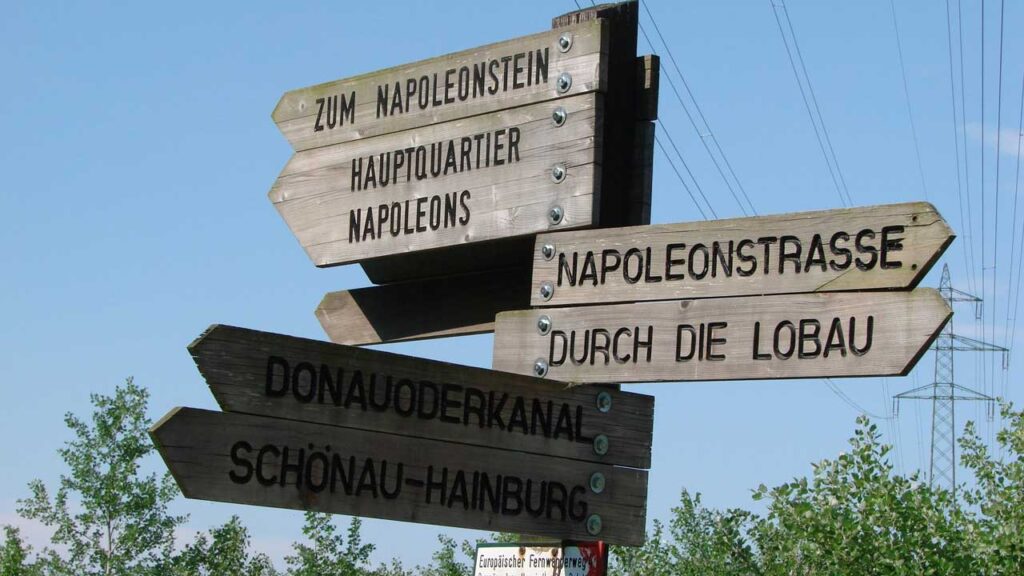 Nach der morgendlichen Einführung durch unseren Reiseleiter fuhren wir in die Lobau auf den Spuren Napoleons. Die Donau war zu seiner Zeit unreguliert, bildete viele Seitenarme, Altwasser und Inseln. Sie war eine wichtige Handelsroute und ein strategisch wichtiger Fluss für Truppenbewegungen. Die Reisegruppe marschierte zu den Orten, an den die französische Armee die Überquerung durchführte und diskutierte den Schlachtplan Napoleons.