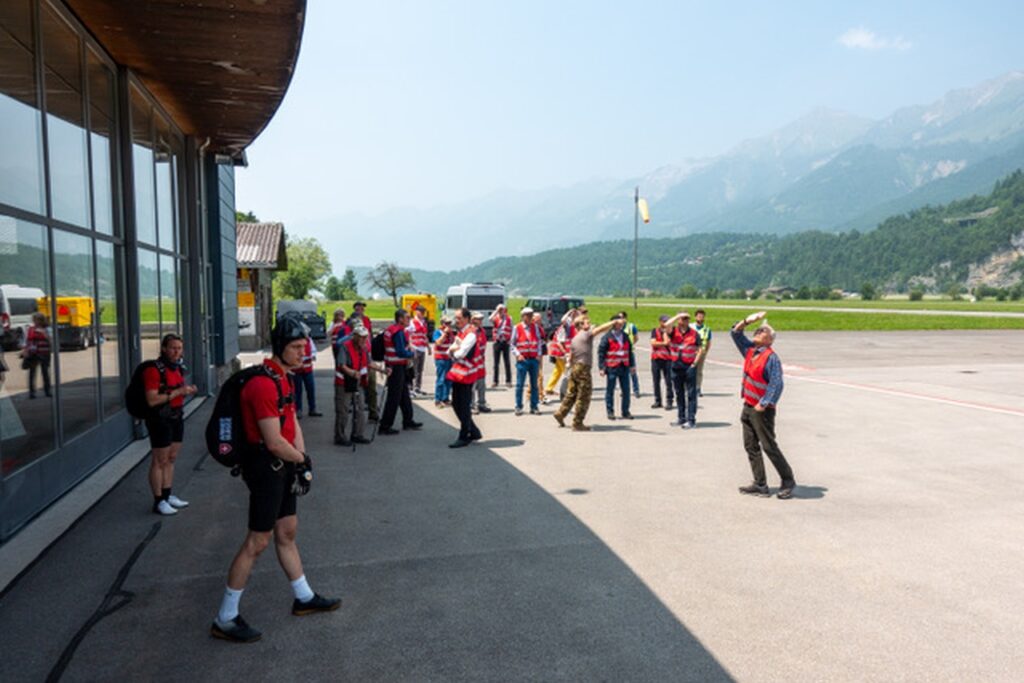 Kurz bevor der Pilatus Porter mit einem satten Röhren abhob – übrigens gesteuert von niemand Geringerem als Oberst Roland Gabriel, der uns 2021 als Chef Einsatzführung durch die Operationszentrale in Dübendorf geführt und dabei einen eindrücklichen Vortrag über den Quick Reaction Alert (QRA) gehalten hatte – erklärte uns Nicolas Baumann, worauf es beim Fallschirmspringen auf diesem Niveau wirklich ankommt.