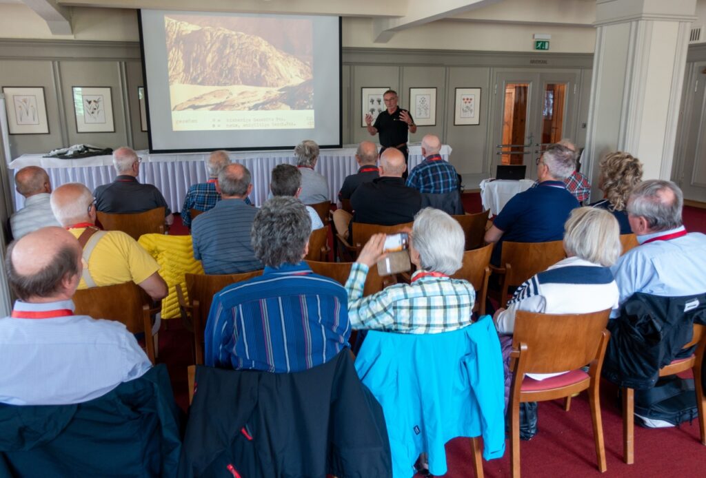 Der zweite Tag begann mit dem Vortrag „Gebirgsdetachement“ von Fritz Teuscher, Bergführer und als langjähriger Bergretter bei Rega und beim Militärflugplatz Meiringen im Einsatz. Die Bruchlandung der Dakota C-53 auf dem Gauligletscher am 19.11.1946 und die Rettung der Passagiere und Besatzung mit dem Fieseler-Storch war der Auslöser für den Aufbau einer berggewohnten Rettungsequipe.