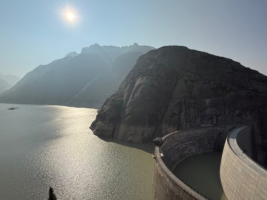 Die alte Staumauer wurde zwischen 1925 und 1932 als sogenannte Bogendruckmauer von bis zu 1400 Arbeitern gebaut und steht heute unter Denkmalschutz. Sie ist sanierungsbedürftig, weil sie nahe der Krone mehrere Risse hat. Wegen Feuchtigkeit und Rostgefahr wurde kein Armierungseisen verwendet. Die neue Mauer ist im Zeitraum 2019 – 2025 erstellt worden und sollte einst 23 m höher werden, sofern die noch hängigen Einsprachen abgewehrt werden können. Als die neue Mauer fertig erstellt war, bohrte man durch die alte Mauer zwei Durchgänge, sodass das Wasser dazwischen fliessen kann. Hätte man nur die alte Mauer saniert, hätte man den See komplett entleeren müssen. Er wurde entleert, um das angelagerte Sediment zu entfernen und die 100-jährigen Abflüsse und Stollen zu kontrollieren und sanieren, wo notwendig (Dies kostete KWO 30 Mio. Franken). Der ganze Rundgang ist mit vielen interessanten Informationstafeln bestückt und Adrian Deuschle gab immer wieder lustige Begebenheiten von sich preis.