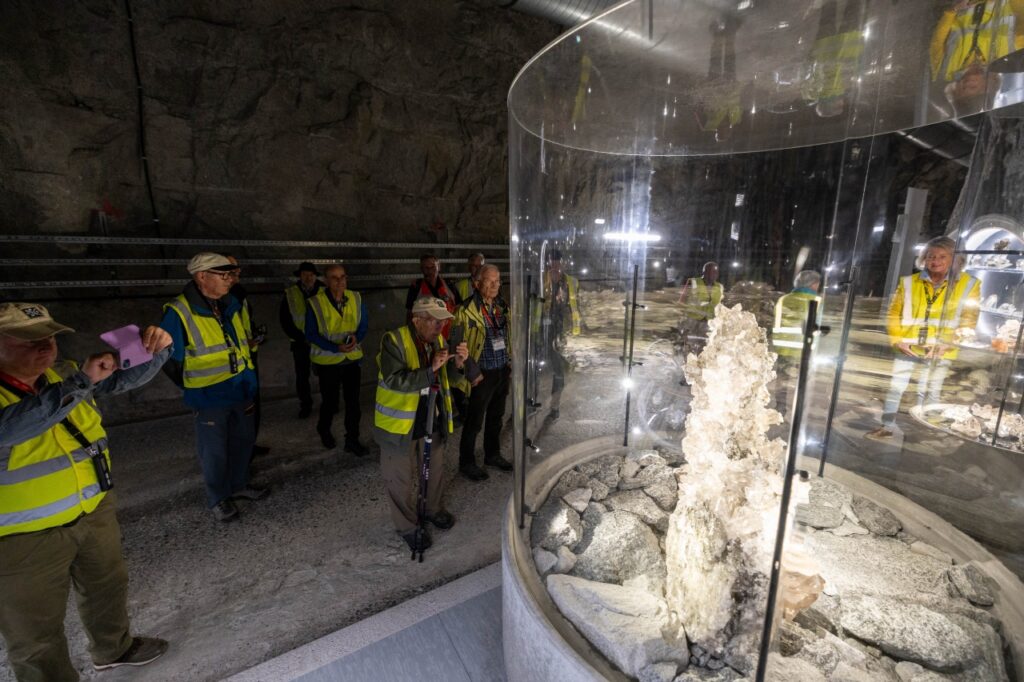 Die Kristallausstellung in einem verwinkelten Stollen zeigte einen weiteren Höhepunkt der Grimselwelt. Die schönsten „Strahlen“, welche bei Sprengarbeiten für den Ersatzbau der neuen Spitallamm Staumauer 2019 gefunden wurden, werden hier den Besuchern zugänglich gemacht.