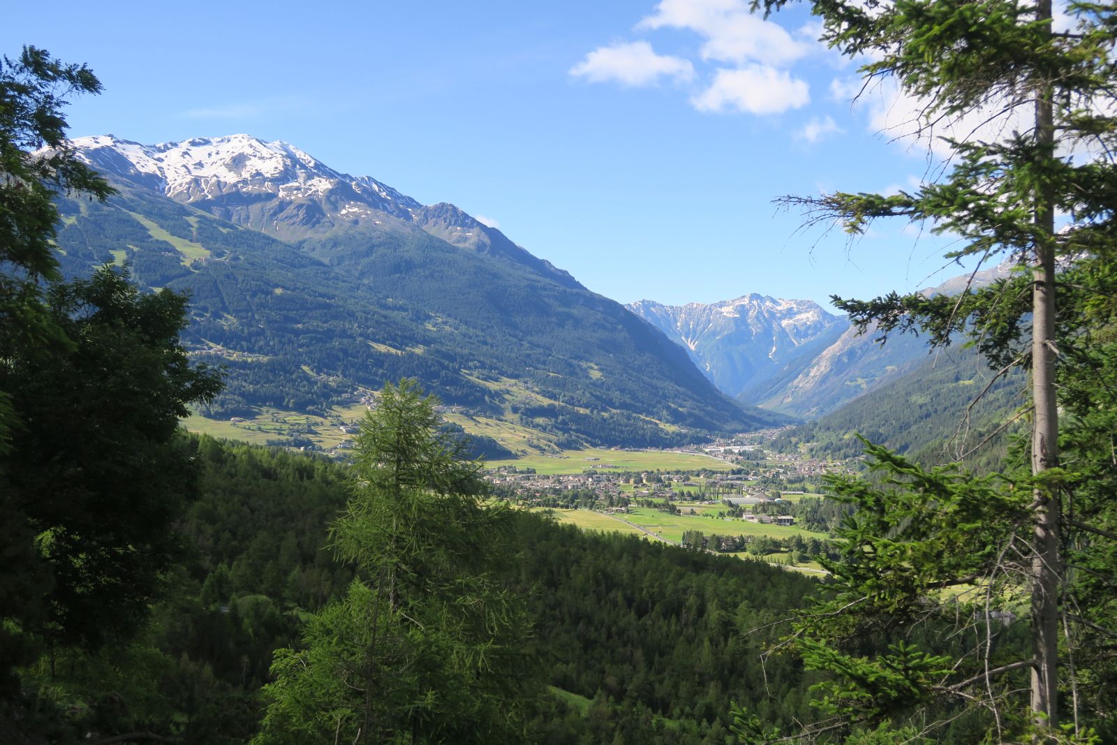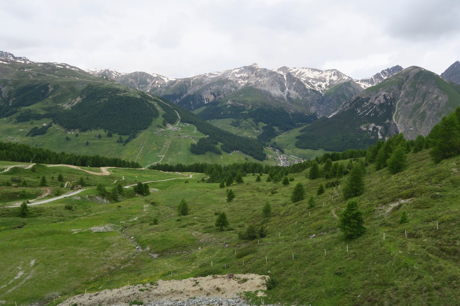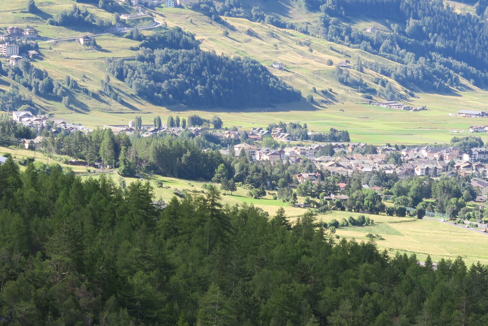 Die stark ansteigende, kurvenreiche und enge Bergstrasse zu den Torri di Fraële meisterte unser Chauffeur mit Bravour. Von hier oben aus hatten wir eine prächtige Übersicht auf die Zugänge ins Val di Camp und nach Livigno.