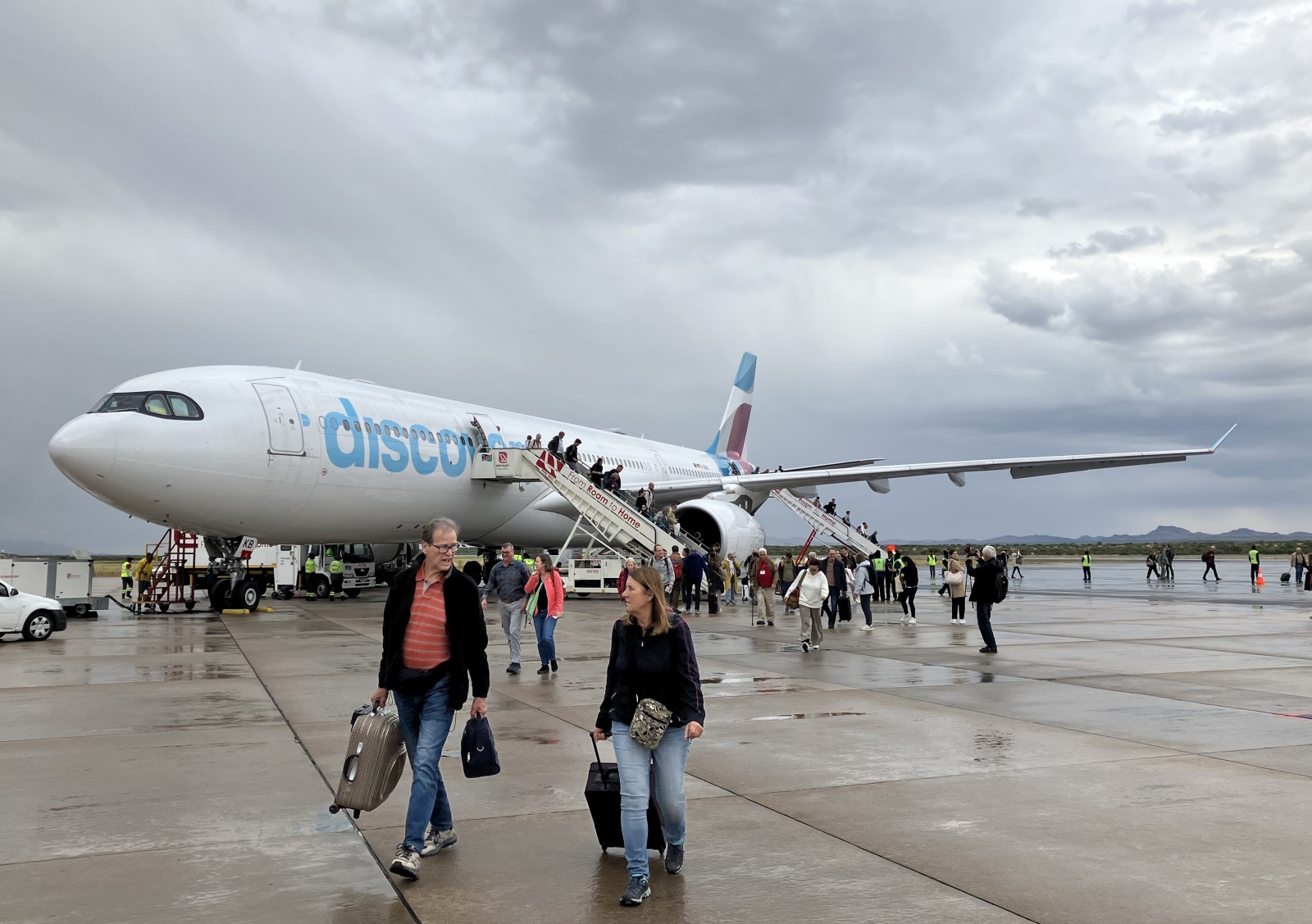 Zwölf erwartungsvolle Teilnehmer treffen sich am Meeting Point in Kloten, um pünktlich um 17:00 Uhr über München und von dort über Nacht mit Lufthansas Tochtergesellschaft Discover nach Windhoek zu fliegen. Infolge ausverkaufter Flugverbindung reisen zusätzlich ein Paar von Frankfurt direkt und ein Teilnehmer von Genf über Addis Abeba.