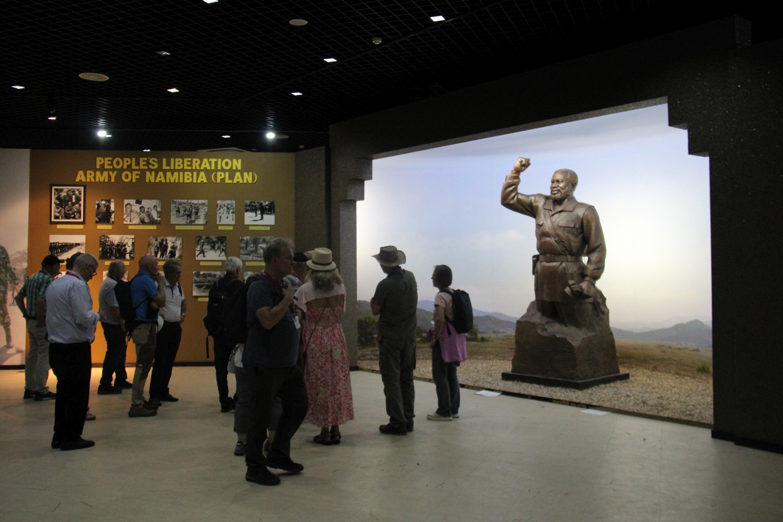 Er war ursprünglich Lehrer in einer internationalen Eliteschule, trat aber von seiner Schultätigkeit zurück, als immer klarer wurde, dass die sozialistische Regierung im Bildungswesen im Sinne gleicher Chancen für alle der Tendenz zur Niveaureduktion klar den Vorrang einräumte. Er hat in der Folge seit 1990 die Unternehmer-Laufbahn eingeschlagen und unter dem auf der Reise immer wieder angetroffenen Namen «Gondwana» Hotels, wie das von uns bezogene, bestausgewiesene «The Weinberg», Restaurants, eine Autovermietung und eine Ausbildung von Fremdenführern mit insgesamt 1600 Mitarbeitern gegründet. Die Führung seines Unternehmens hat er seinen Söhnen abgetreten. Seine Vorliebe gilt aber immer noch der Tätigkeit als Touristenführer, und so führt er uns eloquent durch das Museum, das im Stile des kommunistischen Realismus die nationale Befreiungsbewegung Namibias aufzuzeigen versucht.