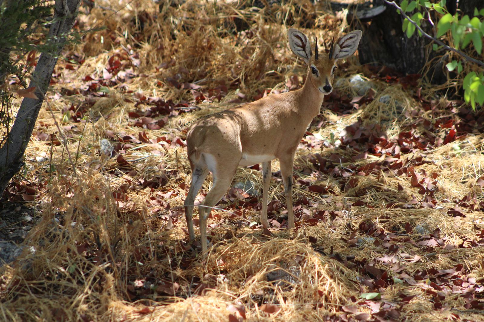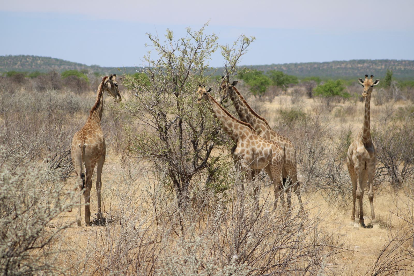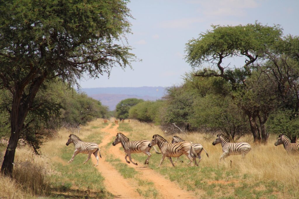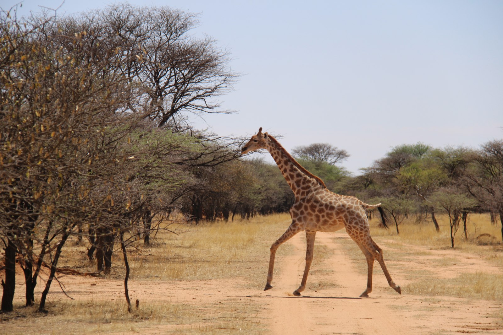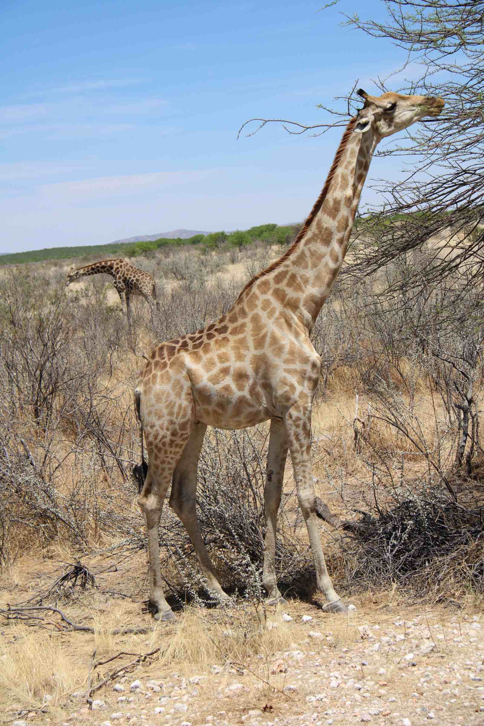 Wir treffen auf zahlreiche Giraffen, zahlreiche Springböcke, Elenantilopen und Zebras. Für Grosswild hingegen scheint die Farm zu klein zu sein.