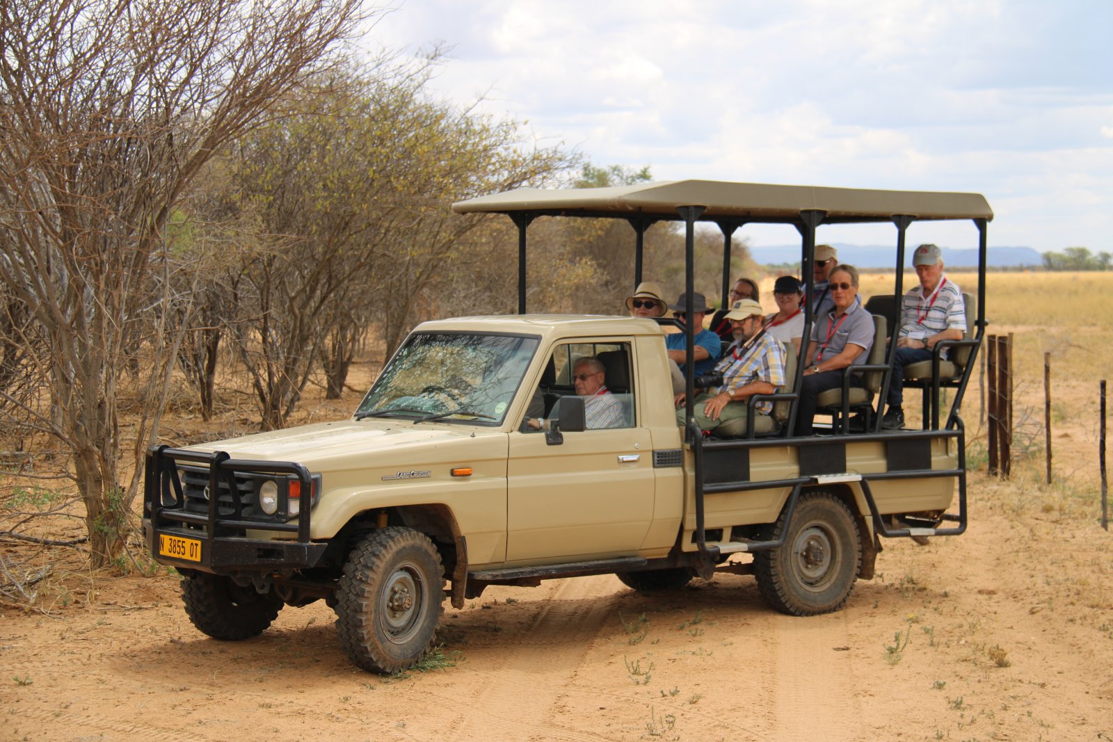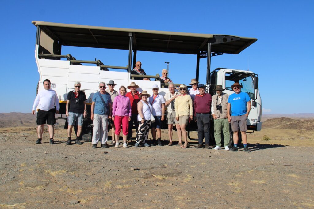 Nach 10-stündigem Flug landen wir in Windhoek, wo uns unser Reiseleiter, Divisionär a D Urs Gerber, erwartet und auch die über andere Routen eintreffenden Teilnehmer kurz nach uns ankommen und damit die Reisegruppe auf 16 Teilnehmer ergänzen.