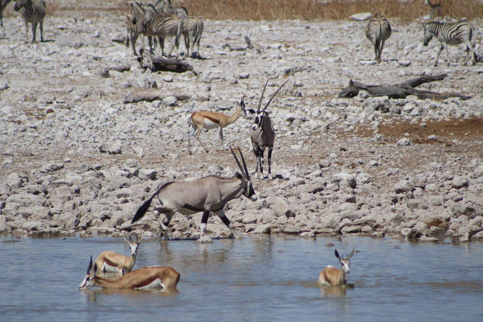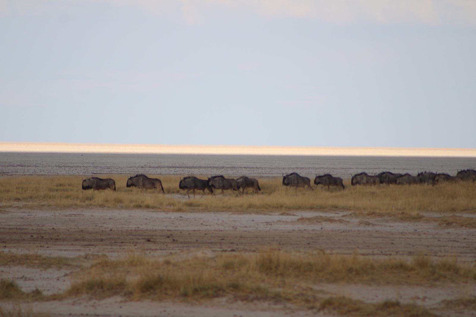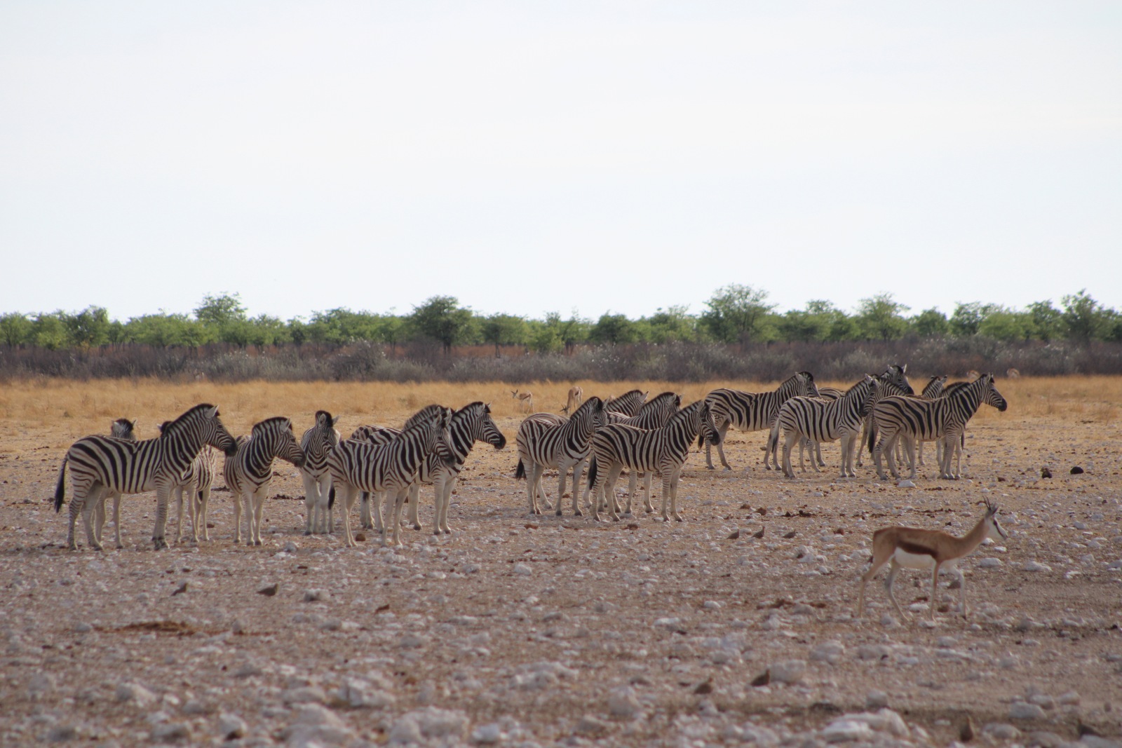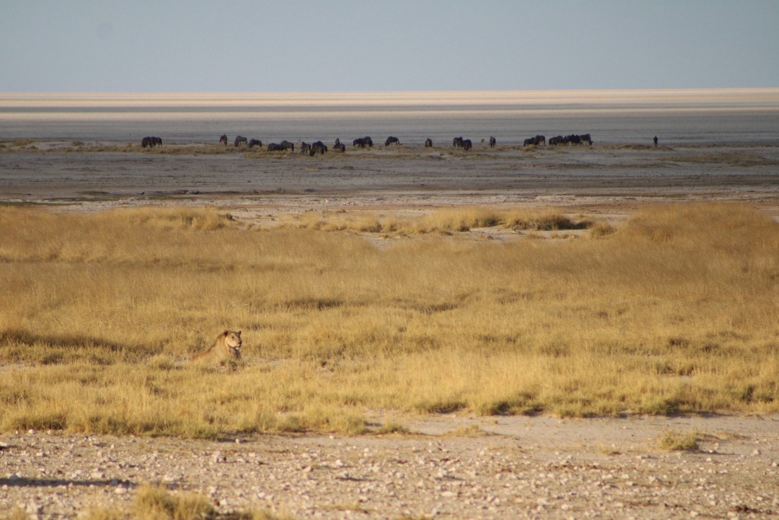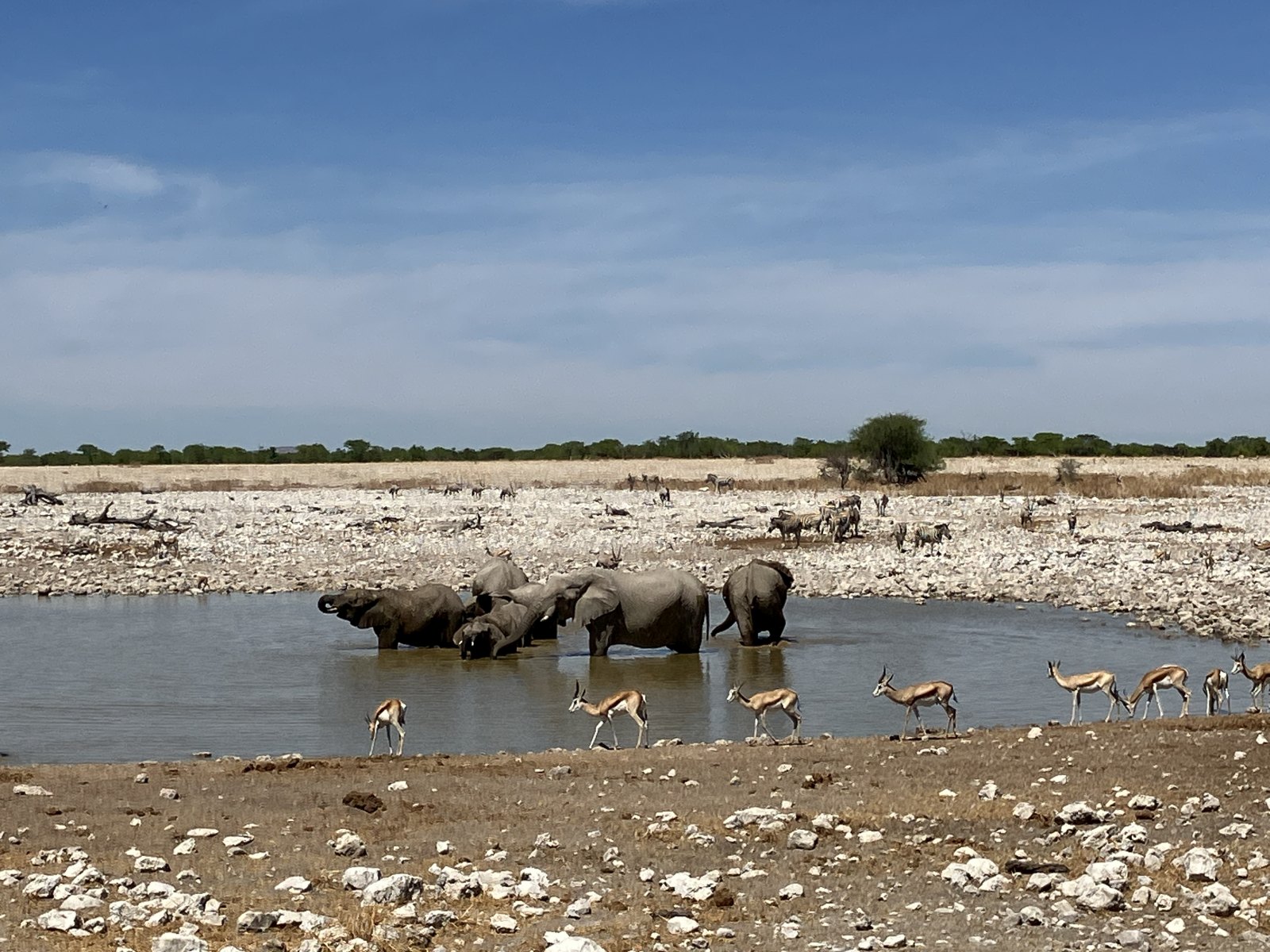 Nach rund dreistündiger Fahrt weiter Richtung Nord gelangen wir zur Etosha Safari Lodge und auf einer anschliessenden vierstündigen Safari geht es von Süden her in den westlichen Teil des riesigen Ethosha National Parkes, der mit 22’912 km² etwa der Hälfte der Oberfläche der Schweiz entspricht, wovon die eigentliche unwirtliche Pfanne (Salzwüste) etwa 20 % ausmacht.