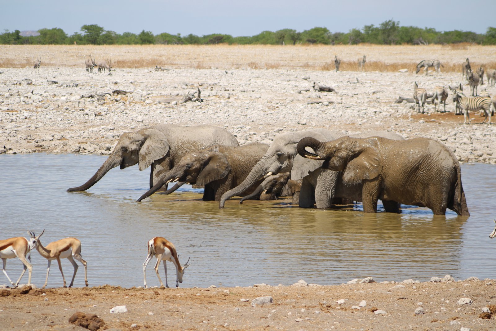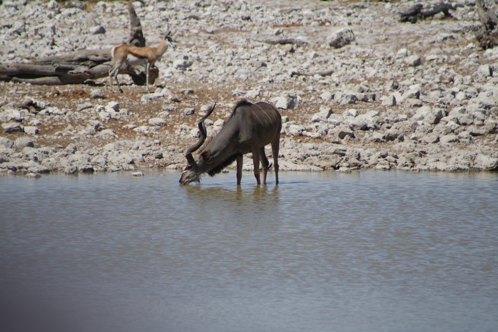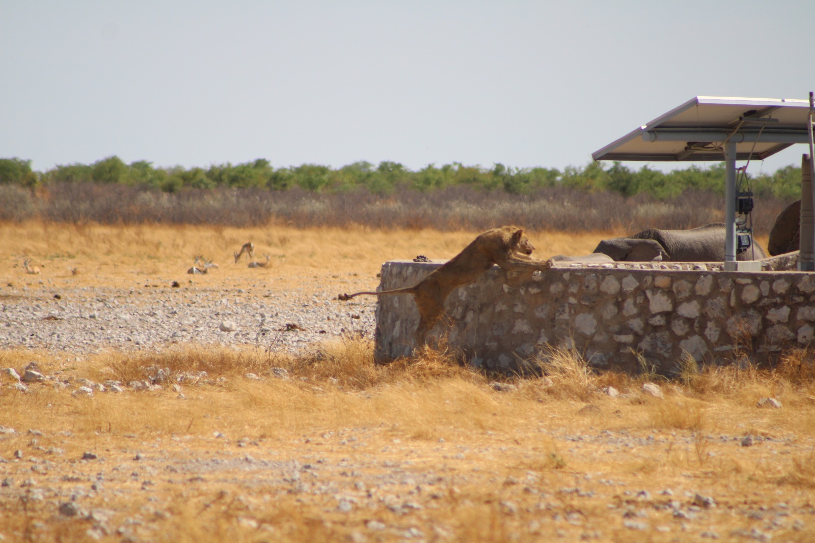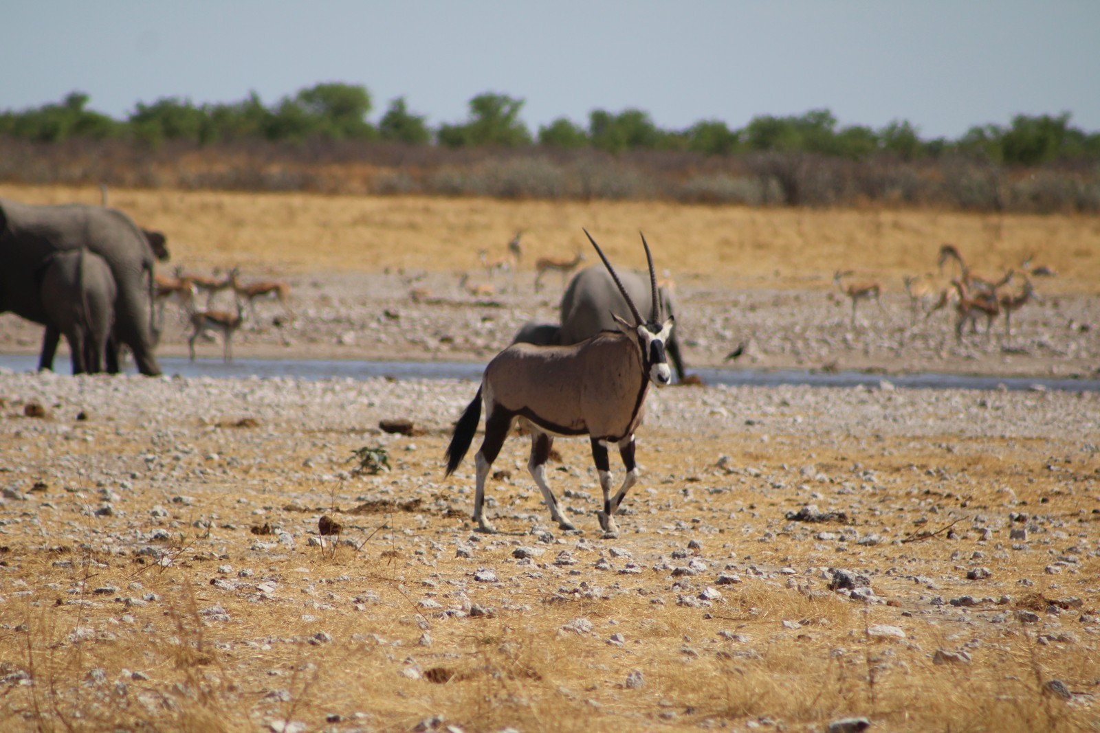 Nach rund dreistündiger Fahrt weiter Richtung Nord gelangen wir zur Etosha Safari Lodge und auf einer anschliessenden vierstündigen Safari geht es von Süden her in den westlichen Teil des riesigen Ethosha National Parkes, der mit 22’912 km² etwa der Hälfte der Oberfläche der Schweiz entspricht, wovon die eigentliche unwirtliche Pfanne (Salzwüste) etwa 20 % ausmacht.
