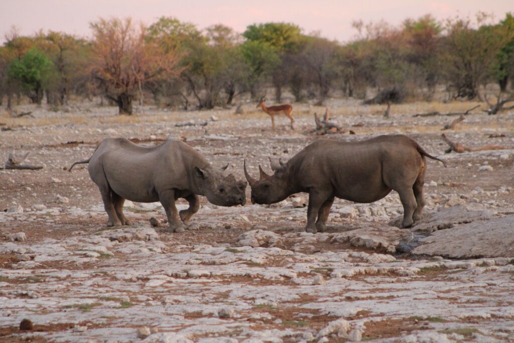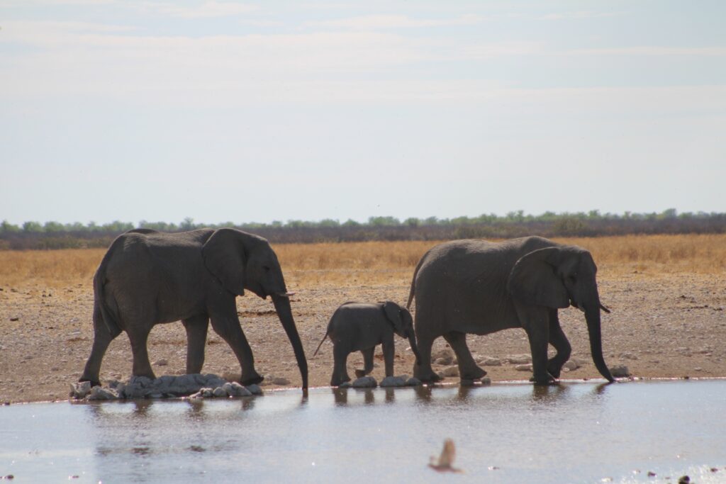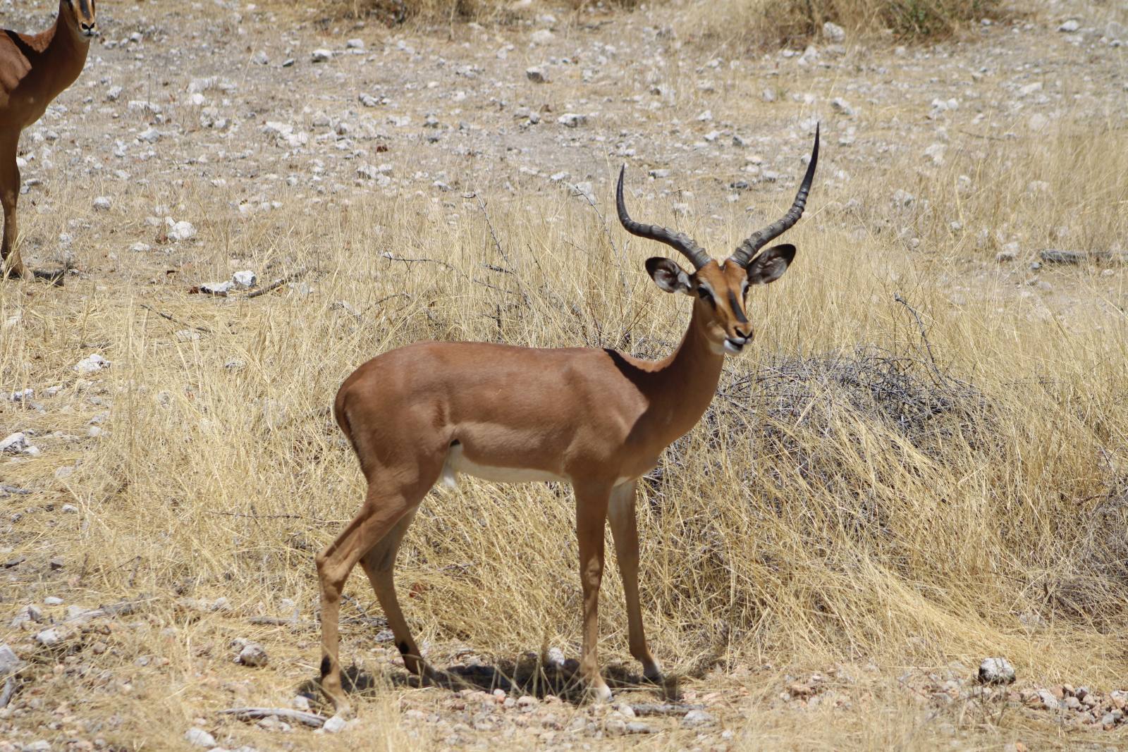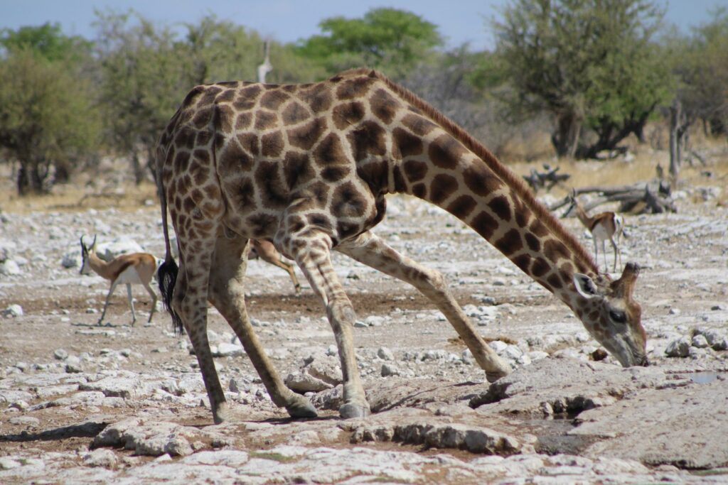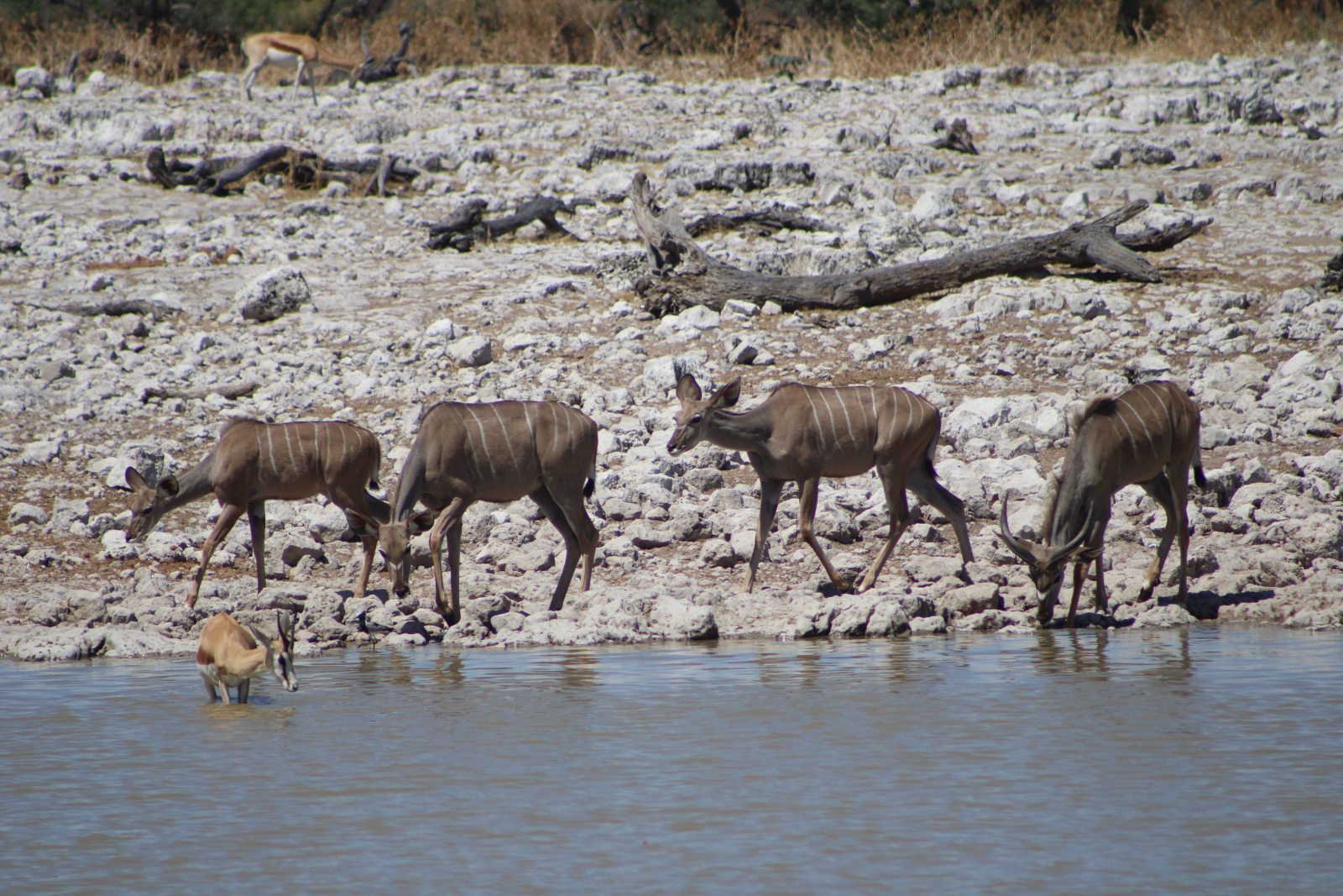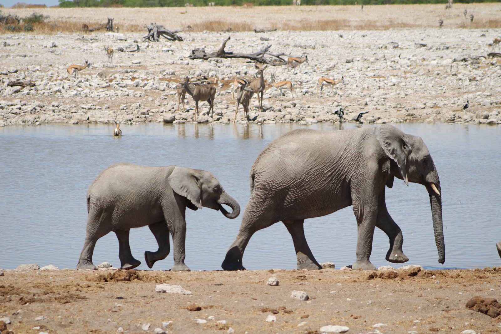 Nach rund dreistündiger Fahrt weiter Richtung Nord gelangen wir zur Etosha Safari Lodge und auf einer anschliessenden vierstündigen Safari geht es von Süden her in den westlichen Teil des riesigen Ethosha National Parkes, der mit 22’912 km² etwa der Hälfte der Oberfläche der Schweiz entspricht, wovon die eigentliche unwirtliche Pfanne (Salzwüste) etwa 20 % ausmacht.