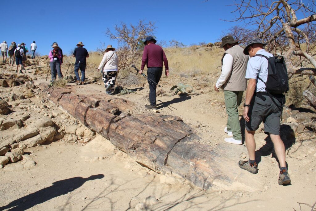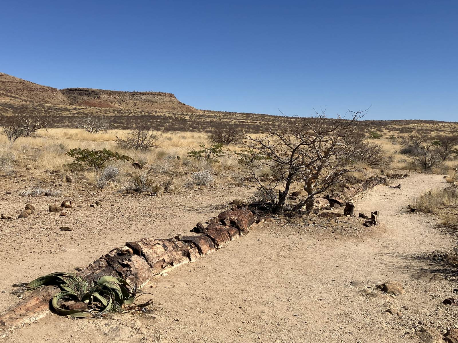 Früh um 07:30 Uhr geht’s los auf die Tour zur Besichtigung der Sehenswürdigkeiten in der weiteren Umgebung der «zweifelhaften» Quelle. Im Petrified Forest treffen wir auf jahrmillionenalte, versteinerte Pinien, die über Gletscher aus Zentralafrika an den heutigen Standort verfrachtet worden sein sollen und hier unter Druck, Hitze, Wasser und Einlagerung von verschiedenen Metallen wie Mangan, Eisen, Kobalt und weiteren in den heutigen Zustand versetzt wurden. Durch die ständig wechselnden äusseren Umstände haben sich die Bäume in Segmente von 50–100 cm unterteilt. Durch den Fund dieser Einlagerung ist man zur Einsicht gelangt, dass in der Umgebung wertvolle Elemente und Mineralien auffindbar sein könnten.