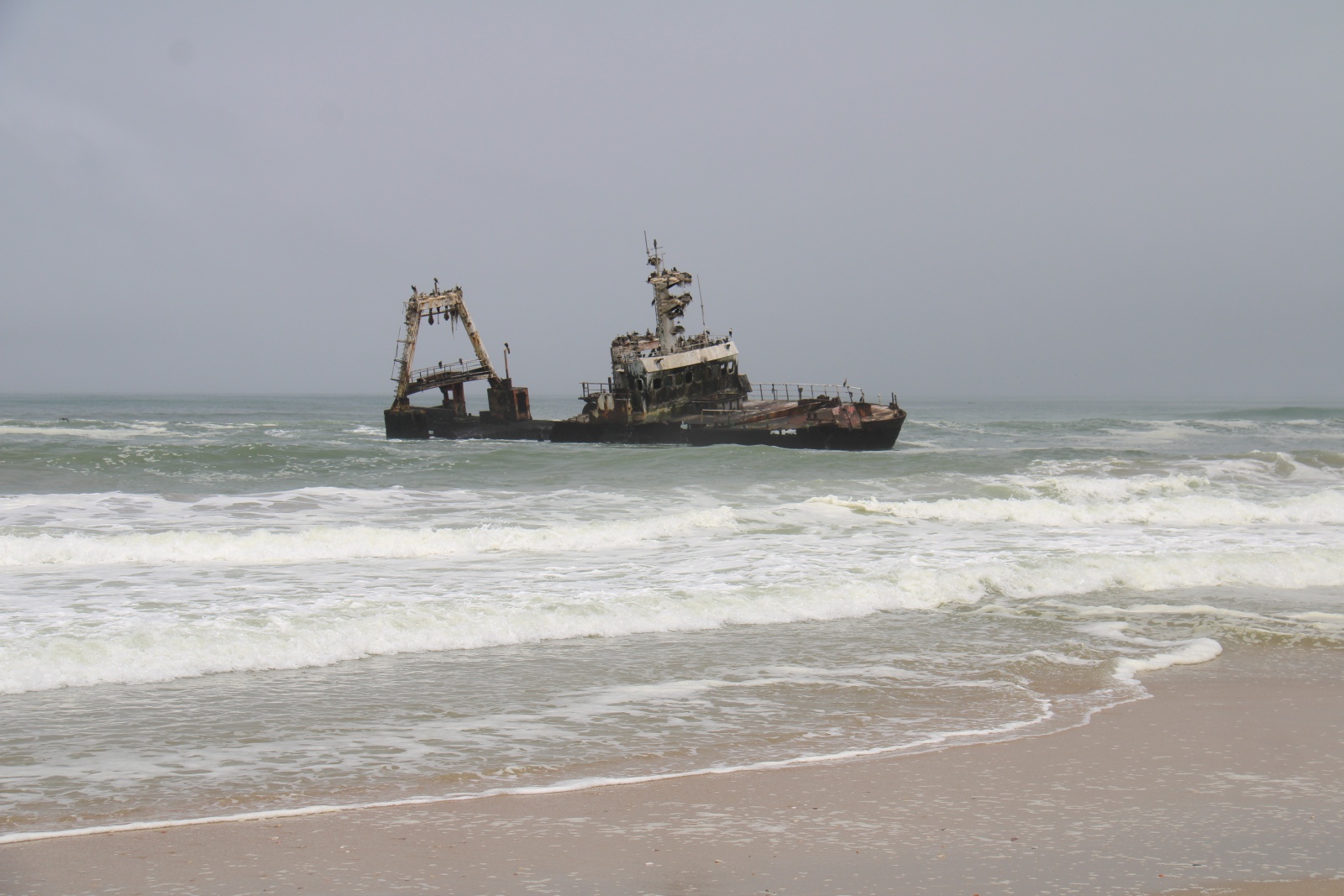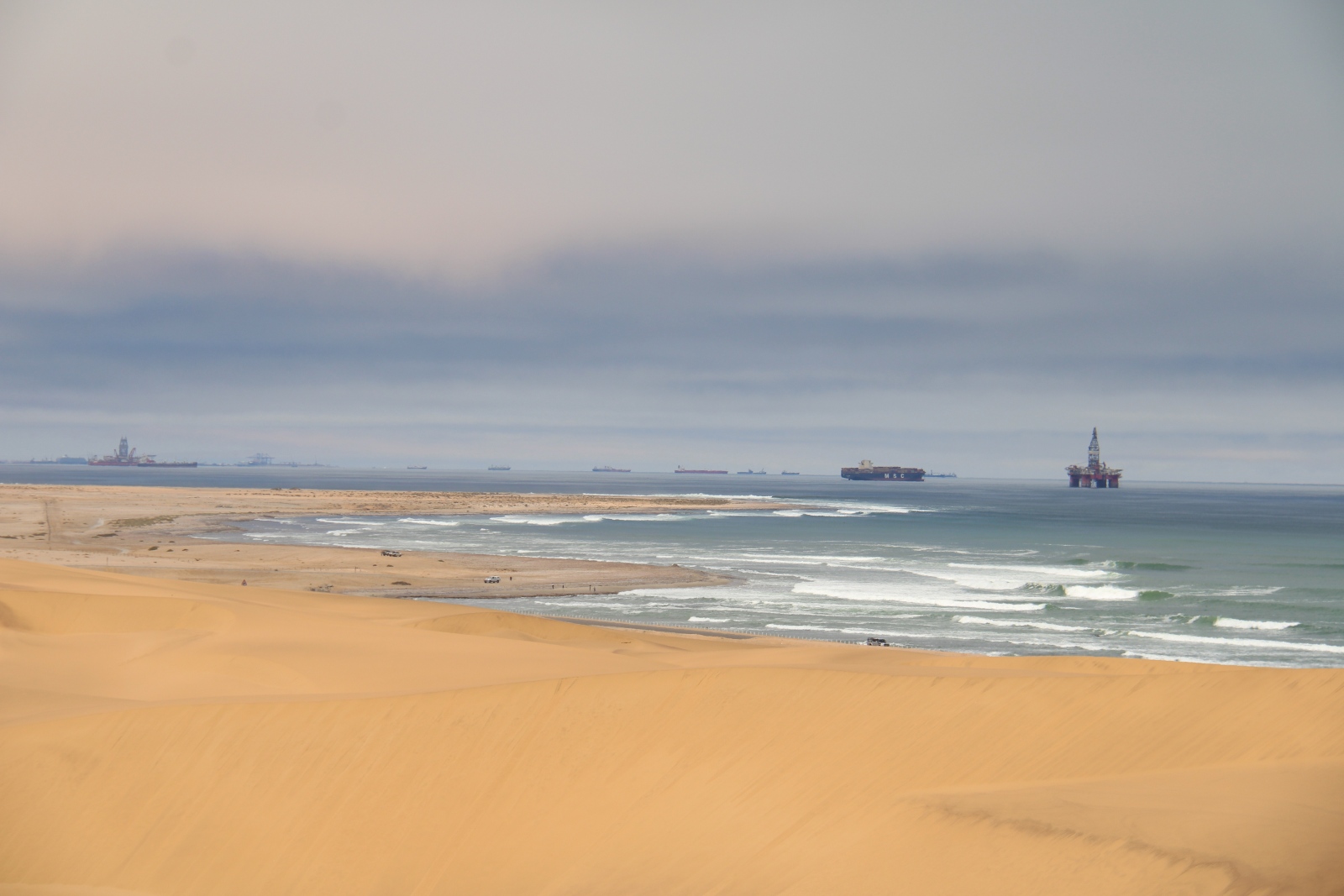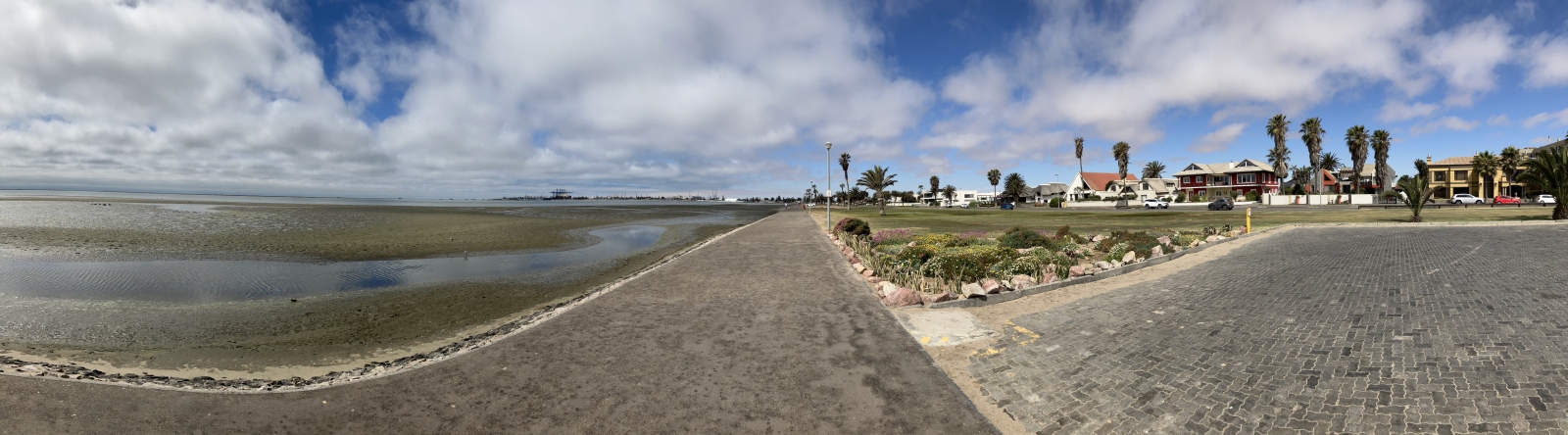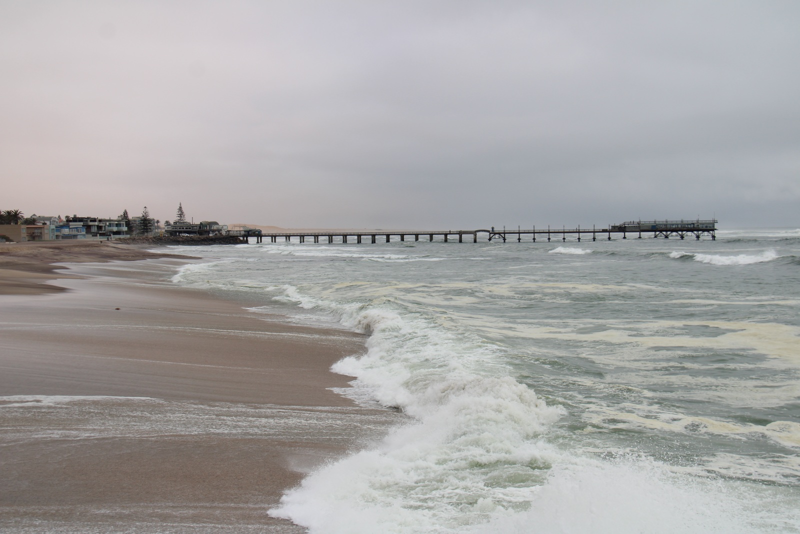 In einer fast fünfstündigen Fahrt verschieben wir uns durch ein fast menschenleeres Gebiet an interessanten, aus kugelförmigen, grossen Felsen gebildeten, durchaus 100 oder mehr Meter hohen Bergen mittlerer Grösse vorbei Richtung Süden über Uis und von dort auf einer durch China im Bau befindlichen Strasse nach Hentiesbaai und Swakopmund. Nach einer individuellen Erkundung der ursprünglich fast rein deutschsprechenden Hafenstadt hält unser Reiseleiter einen abschliessenden und zusammenfassenden Vortrag über den Unabhängigkeitskrieg Namibias, auf dessen Vorgeschichte die Reiseteilnehmer auf verschiedene Weise im Verlauf der Reise bereits gestossen sind.