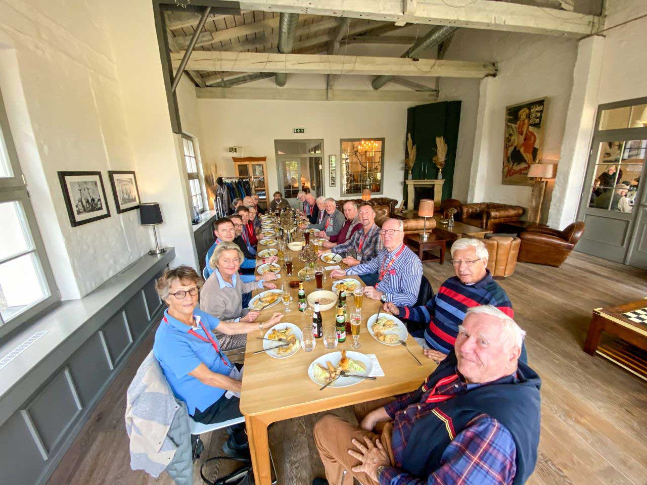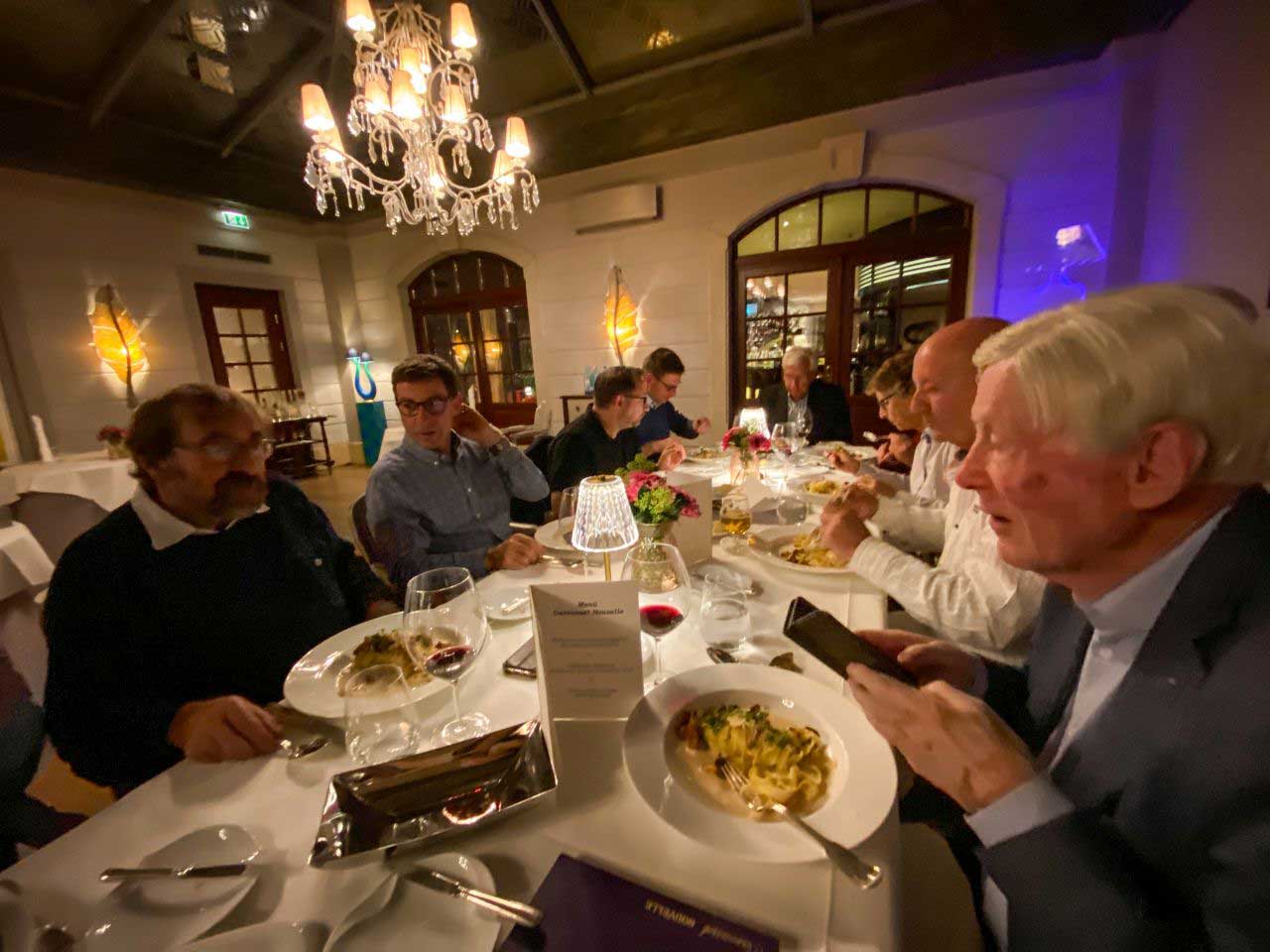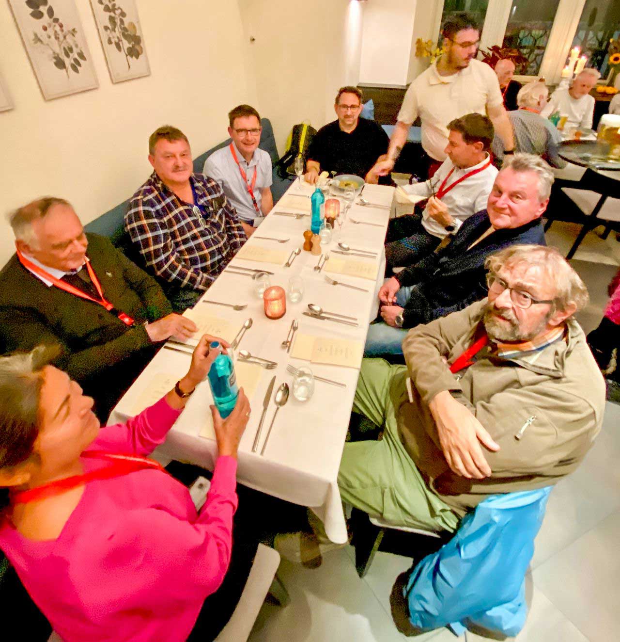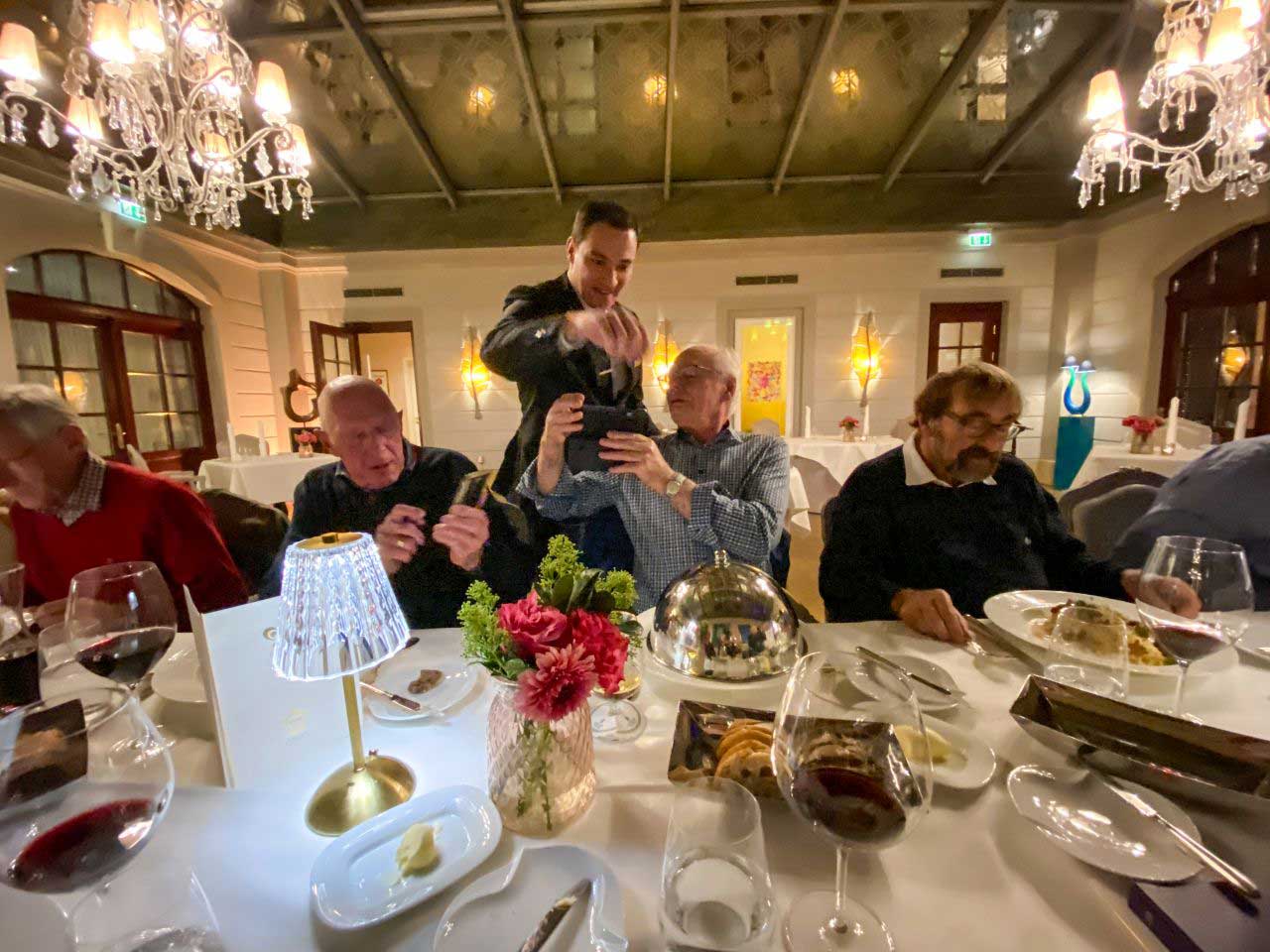 Im Restaurant Runway 34 in Kloten sorgte im Hintergrund eine Iljushin 14 für das passende Ambiente zum ersten Referat dieser Reise von Oberstleutnant a.D. René Zürcher. Er war während des kalten Kriegs Nachrichtenoffizier der Schweizer Luftwaffe und erzählte uns von seinen persönlichen Beobachtungen. So werde bis heute von den Russen der Luftkampf vom Boden aus geführt und die Eigenkompetenz eines Piloten sei damit an einem kleinen Ort. Das gehe hin bis zu den Schiessbefehlen. Während des Kalten Krieges sei auch über die Anzahl und Typen der Flugzeuge und über deren Standorte in Moskau entschieden worden und nicht in den jeweiligen WAPA-Staaten. Die Fragen der Reiseteilnehmer wurden vom Referenten kompetent beantwortet.