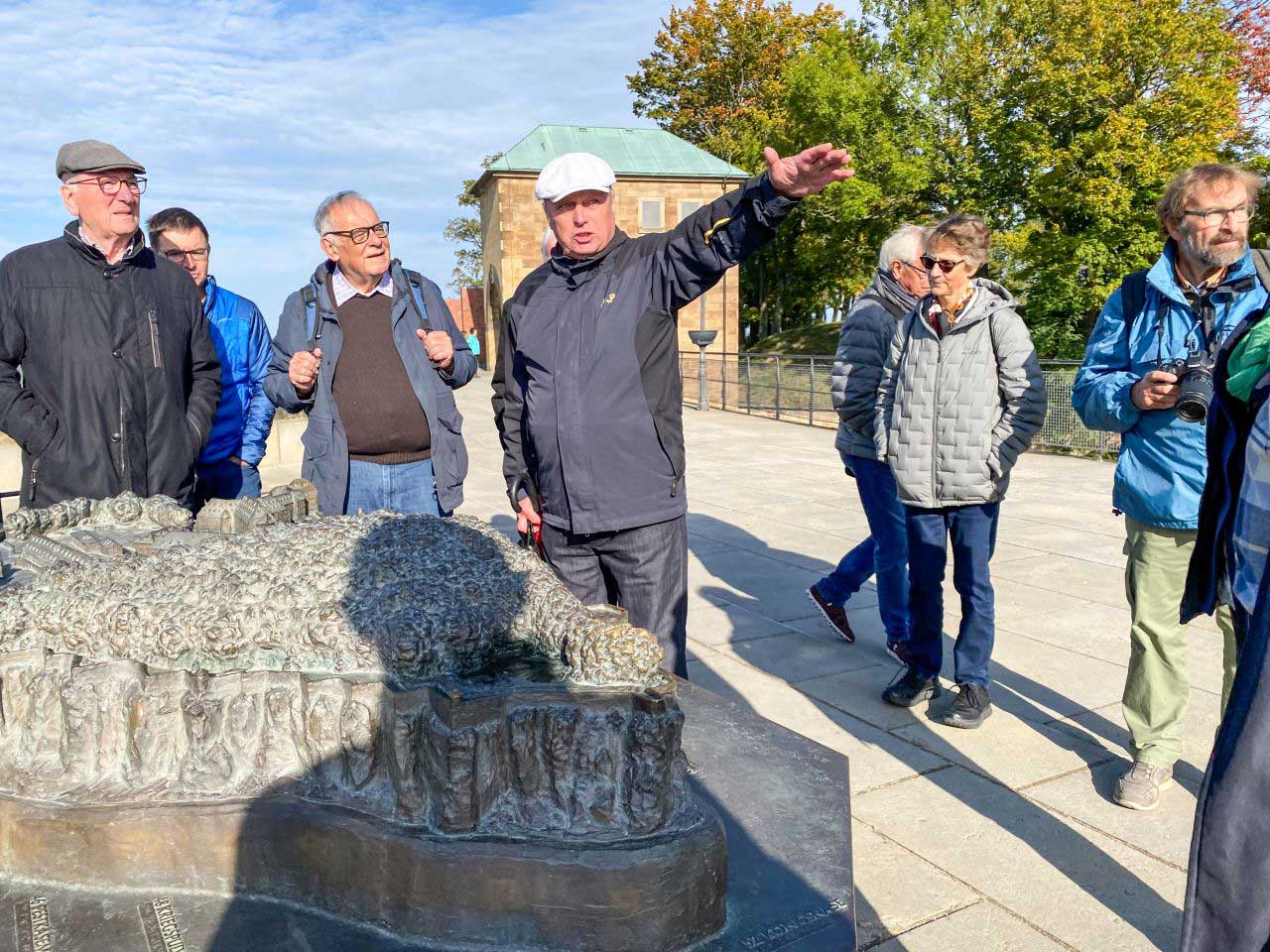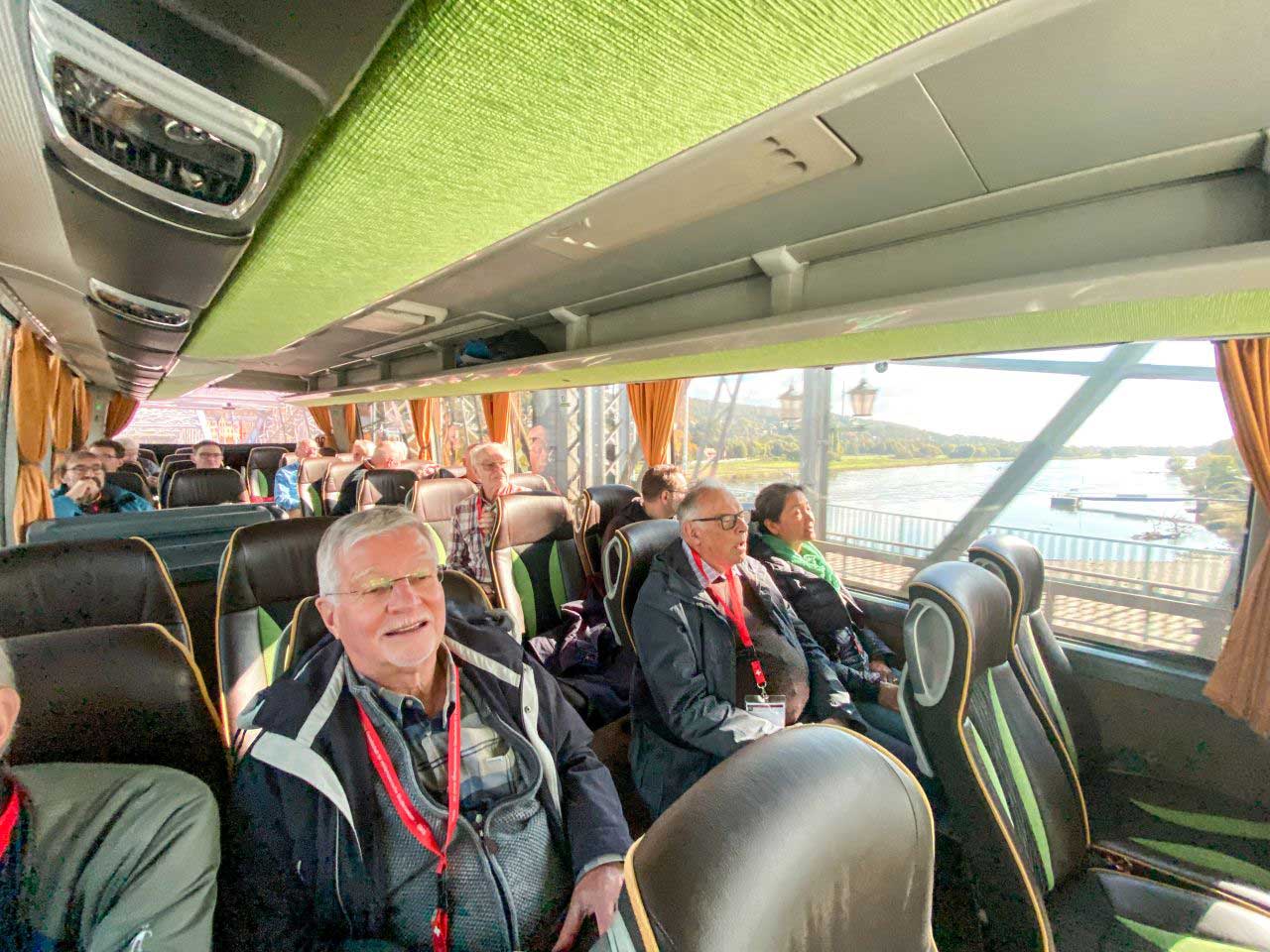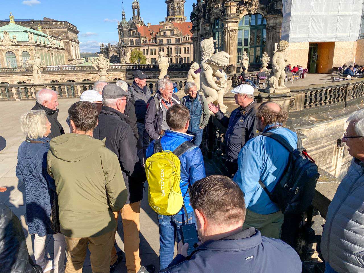 Die von Gunter kommentierte Stadtrundfahrt und seine persönlichen Erzählungen waren ein Erlebnis. Die Vielfalt dieser schönen Stadt ist unglaublich. Vieles hat er uns gezeigt und erklärt, was man sonst in einem Reiseführer bestenfalls in einer Randnotiz entdecken kann. Mit der historischen Schwebebahn fuhren wir auf den Loschwitzer Elbhang. Die Bergstation erlaubte einen Blick auf Dresdner Elbtal und auf die unmittelbar unter der Station gelegene Loschwitzer Brücke, genannt «Das Blaue Wunder». Vorbei ging dann der Weg an der wiederaufgebauten Frauenkirche und dem neu renovierten DDR Kulturpalast mit dem 10x30m grossen Mosaikbild «Der Weg der roten Fahne».