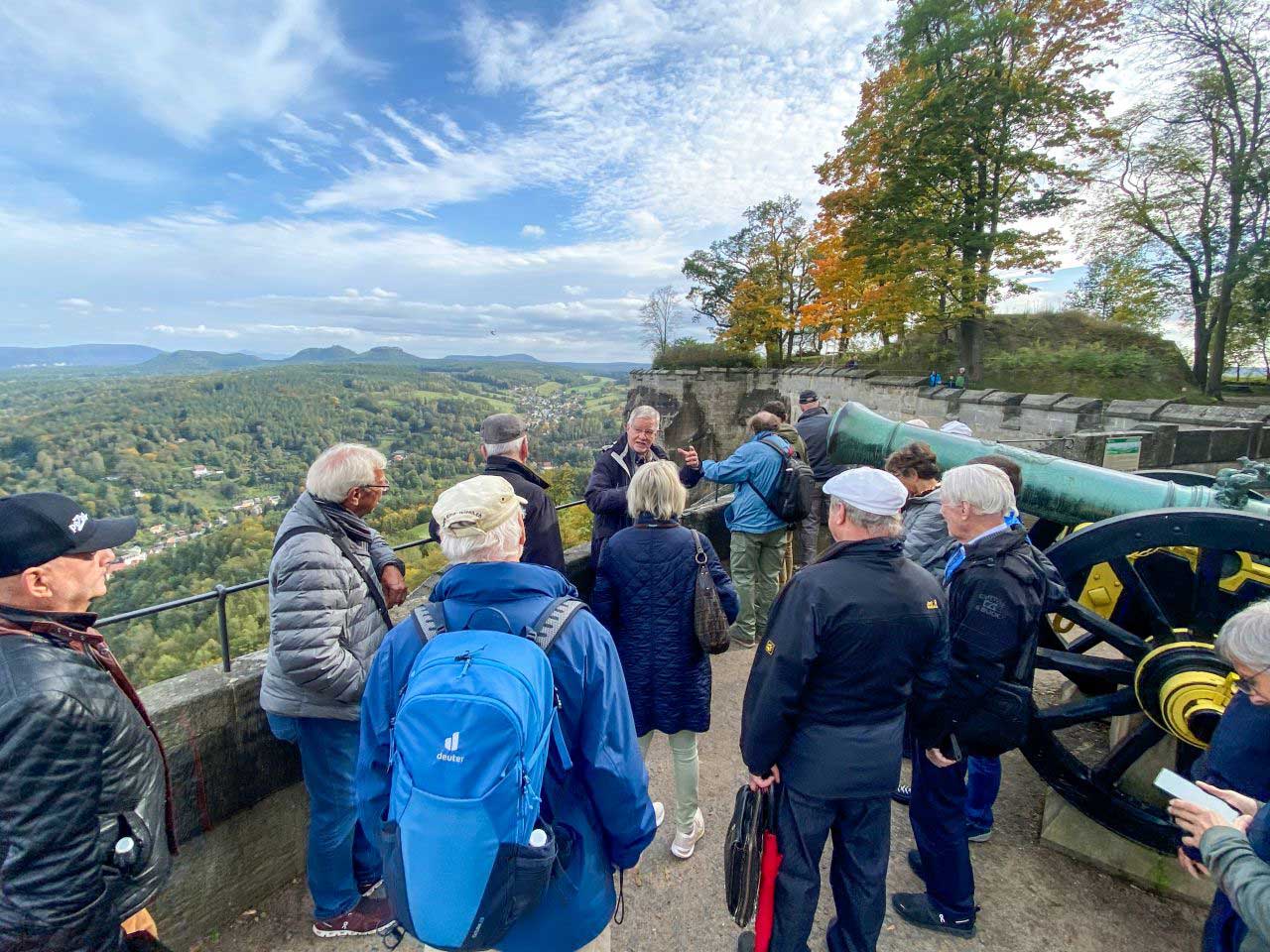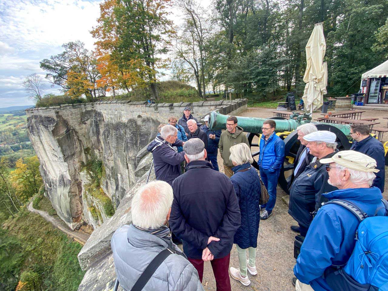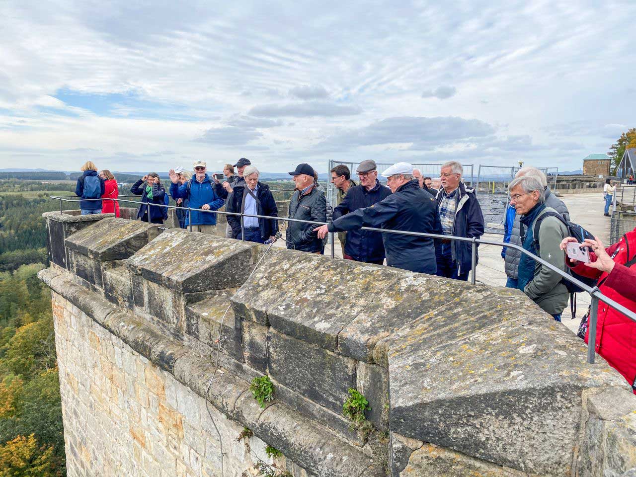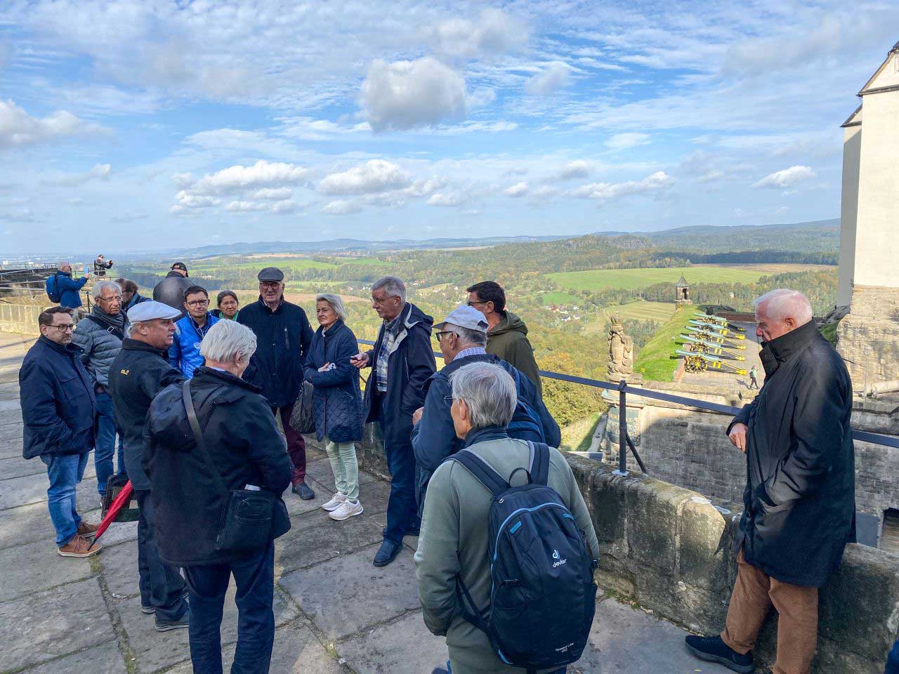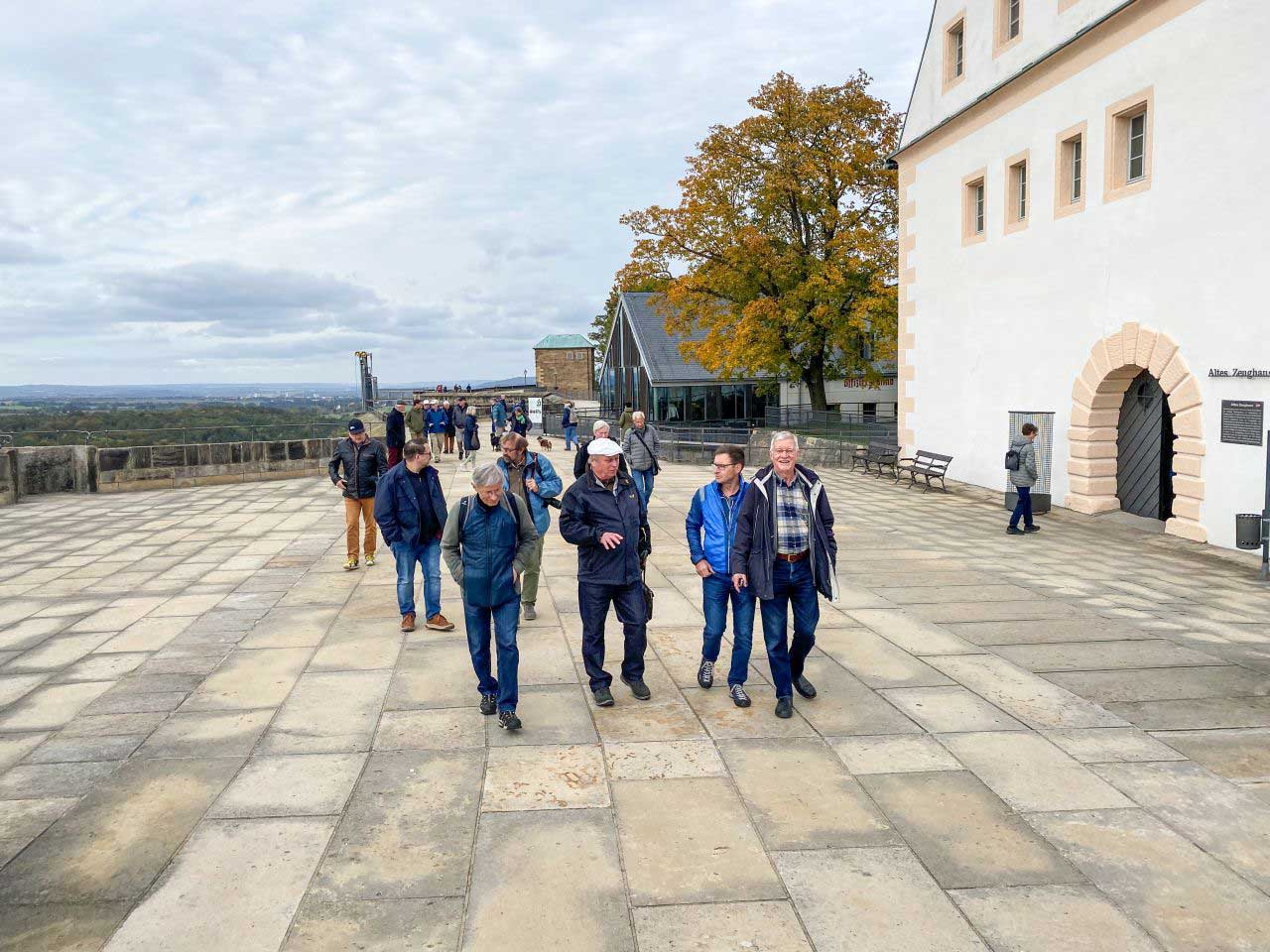 Auf dem Parkplatz der Festung Königstein wartete Oberstleutnant i R Gunter Fichte auf uns. Gunter war unter anderem 1. Staffelkapitän der fliegenden Staffel im Erprobungsgeschwader MiG -29, das mit einer weiteren Einheit im Jagdgeschwader 73 aufging, dessen 1. Staffel die aus der NVA übernommenen MiG-29 betrieb. Seit seinem Ausscheiden aus dem Wehrdienst ist er aufgrund seines breiten geschichtlichen Wissens als Gästeführer und Reisebegleiter in Sachsen tätig.