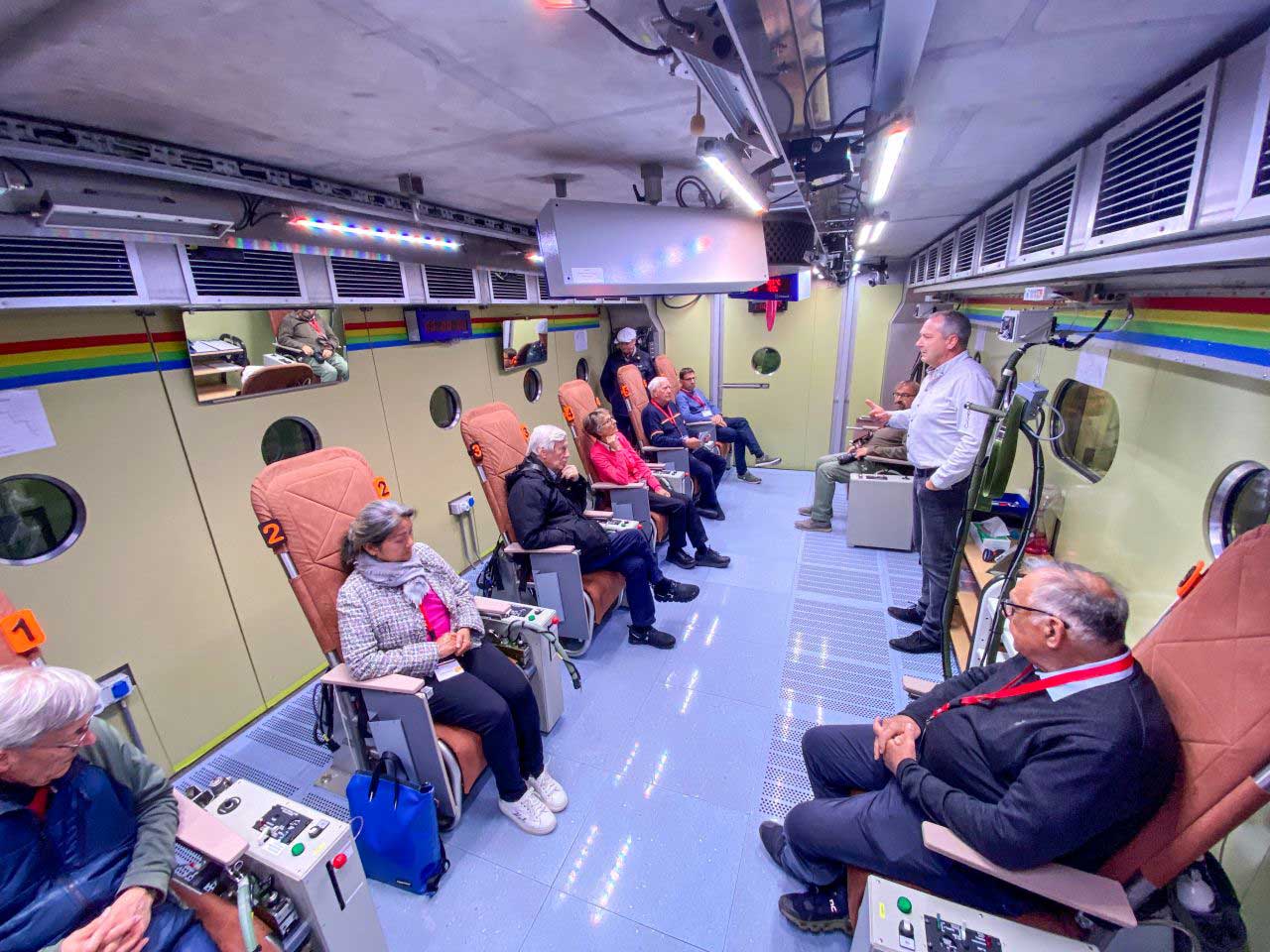 Ein Höhepunkt unserer Reise war die Besichtigung der in einem Rundbau untergebrachten Humanzentrifuge des Flugmedizinischen Instituts der Luftwaffe in Königsbrück. Diese dient der Realisierung von auf den menschlichen Körper einwirkenden Beschleunigungen. Empfangen und in die Materie eingeführt wurden wir durch Dr. Helmut Fielscher.