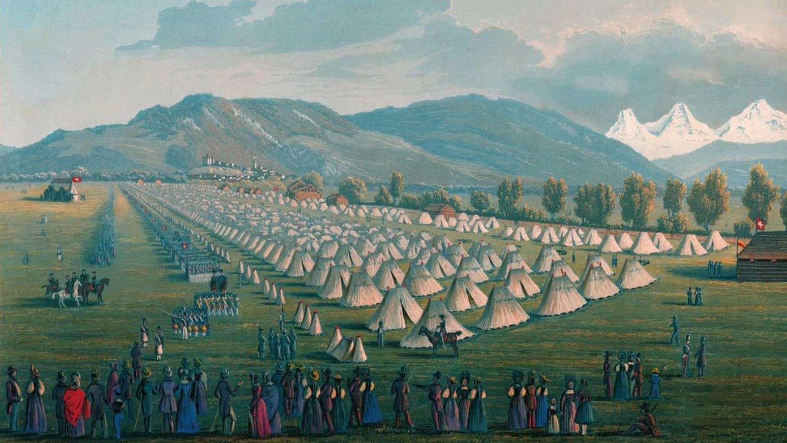 Auf dem Wiener Kongress beschlossen die Grossmächte 1815, die Schweiz zu erhalten, weil dies in ihrem strategischen Interesse lag. Die Kantone, die man zur Unterzeichnung des Bundesvertrages drängte, sollten als Pufferzone zwischen den Grossmächten dienen und somit helfen, den Frieden in Europa zu stabilisieren. Daher verband man die Anerkennung der Schweiz als unabhängiges Land mit der Auflage, die Neutralität, wenn nötig auch militärisch zu schützen. Dies zwang die Kantone zum ersten Mal in ihrer Geschichte, ein gemeinsames Heer aufzustellen und dem Bund Kompetenzen bei der Bestellung von dessen Führung abzutreten.