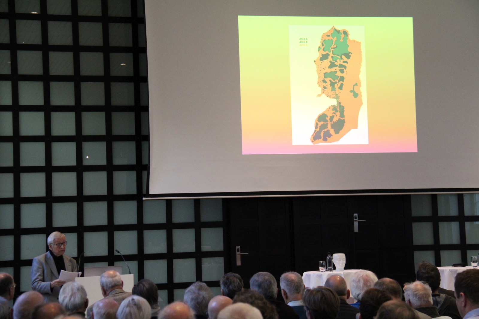 So wurde die jüdische Einwanderung laut Referenten zunehmend erschwert. Dafür gelangten illegal etwa 500’000 Araber ins Mandatsgebiet. 1947 kündigten die Briten das Mandat. Daraufhin schlug die UNO die Teilung in zwei separate Staaten vor. Die Juden sagten ja, die Araber nein. Damit blieb die territoriale Regelung von 1922 gültig. Am 14. Mai 1948 rief David Ben Gurion den Staat Israel aus, der umgehend von 5 arabischen Armeen angegriffen wurde. Israel hielt stand, doch besetzten Jordanien illegal Ostjerusalem und das Westjordanland, Ägypten den Gazastreifen. Damals verliessen Hunderttausende Palästinenser ihre Häuser, grösstenteils weil von eigenen Stellen befohlen. 830’000 Juden wurden damals aus arabischen Ländern vertrieben. Im Sechstagekrieg 1967 eroberte Israel u.a. die 1948 verlorenen Gebiete zurück. Seit dem Sieg von 1967 wurde die Welt jedoch israelkritischer.